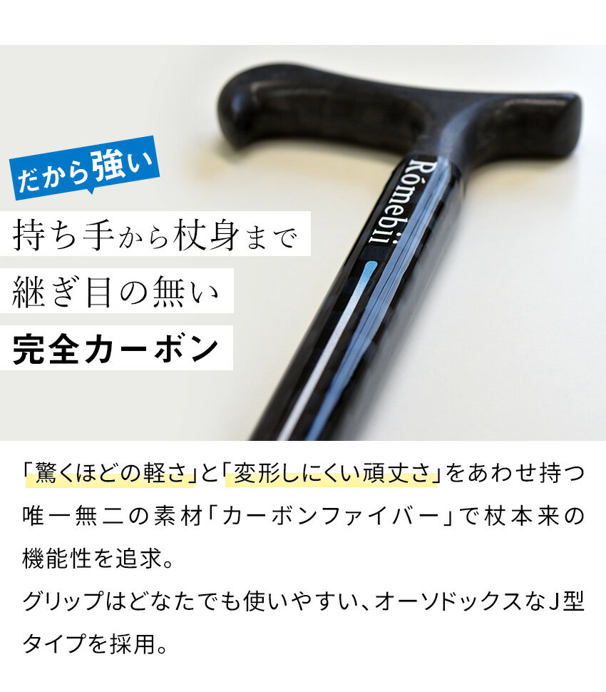 超軽量 カーボン製 一本杖 125g ハンドストラップ付き カーボン 男性 女性 男女兼用 歩行補助杖 手杖 御杖 軽量 ステッキ cane ストラップ付 Romebii 使いやすい ビジネス ブラック ユニセックス メンズ シンプル ギフト プレゼント