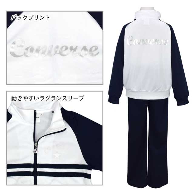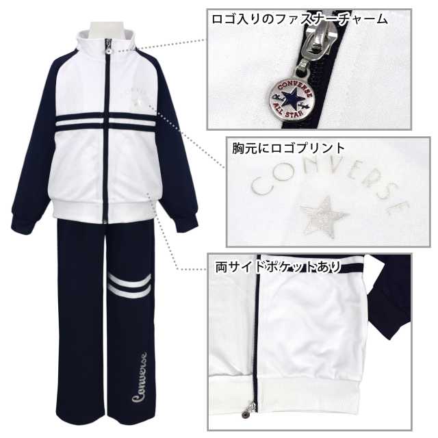 【送料無料】ジャージ キッズ ジュニア 女の子 コンバース 上下 スポーツ ウエア ホワイト☆全2色