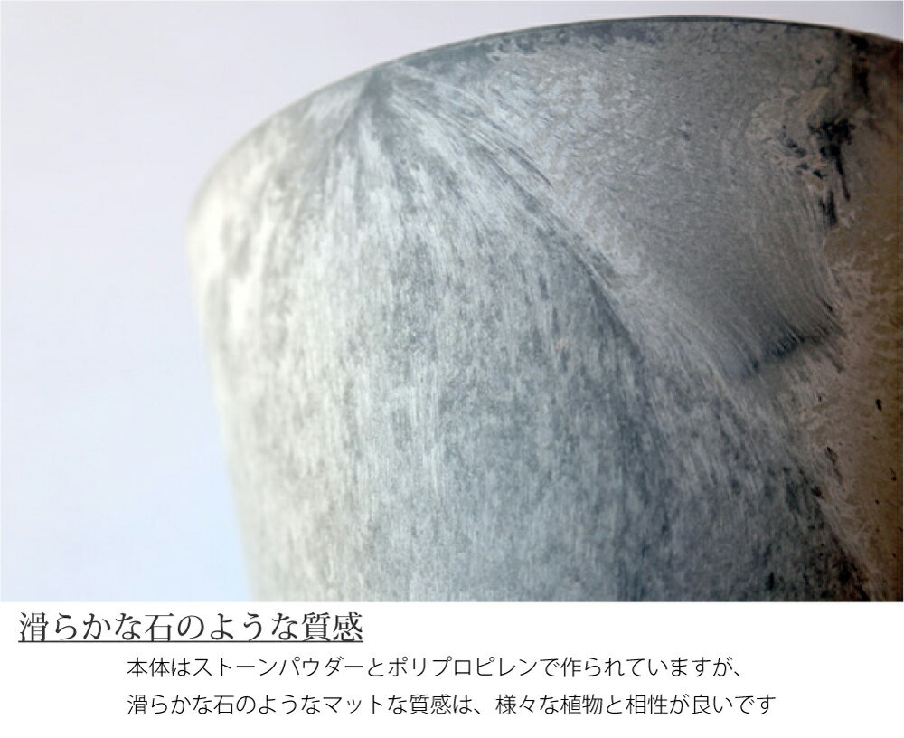 LLサイズのソーサーはこちら 自動的に水が排出できるウォーターディスペンサーはこちら 特徴 室内も屋外もOKの家庭菜園におすすめの軽量の円形プランター 石のような質感でおしゃれです 材質 ストーンパウダー ポリプロピレン 本体サイズ Ø370mm×H340 mm(12〜13号相当) 重量 2400 g 備考 ・室内、屋外使用可能 ・受け皿は付属しません ・屋内で使用の際は、受け皿のご使用をおすすめします ・色味や模様など一点一点個体差がございます ・細かい傷や欠けなどが見受けられる場合がございますが、良品の範囲内となります 納期 即納(在庫がない場合はお取り寄せとなります。5〜7営業日以内の発送)