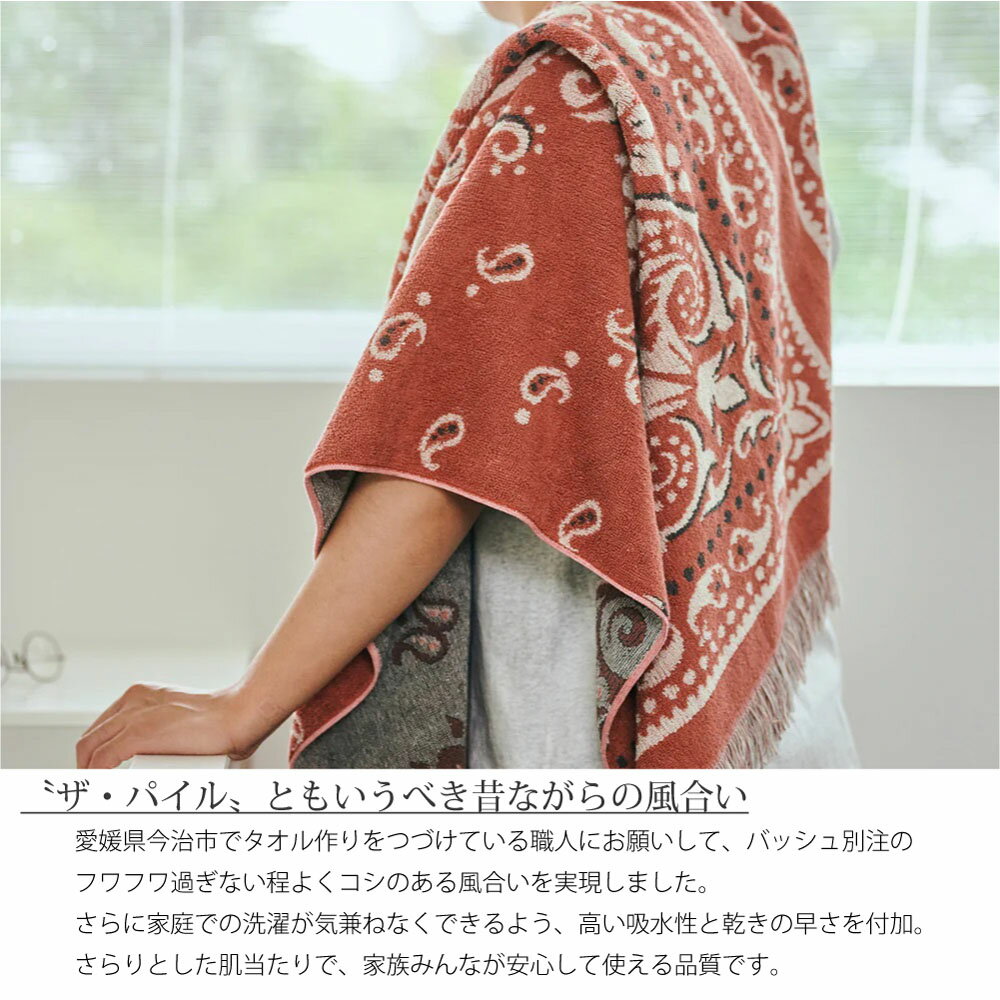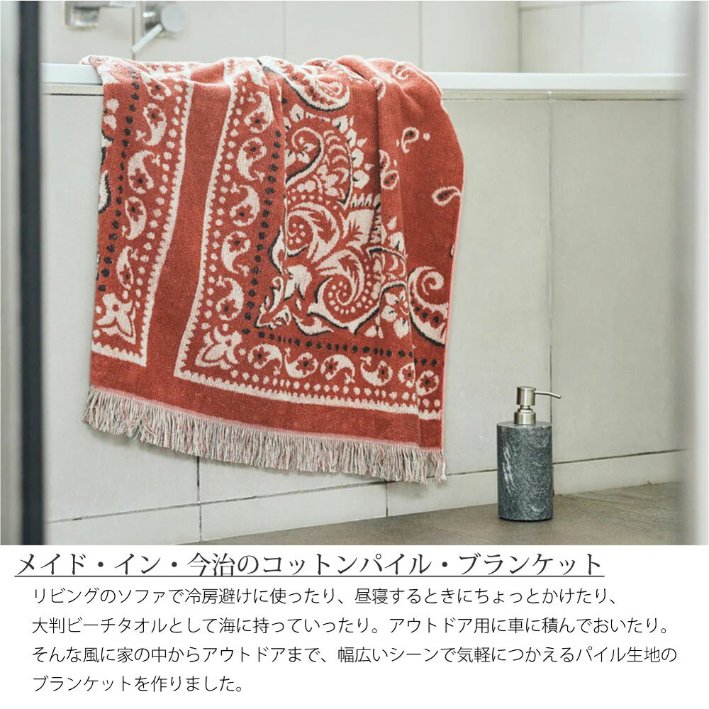 BasShu Cotton Pile Blanket Bandana RED(M)パイル ブランケット タオルケット ビーチタオル レッド 赤 国産 日本製 厚手 綿100% 今治 大人用 軽い 夏用 天然素材 北欧 アウトドア キャンプ おしゃれ アンティーク ネイティブ バンダナ ペイズリー 41547