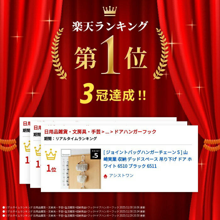 [ ジョイントバッグハンガーチェーン S ] 山崎実業 収納 デッドスペース 吊り下げ ドア ホワイト 6510 ブラック 6511