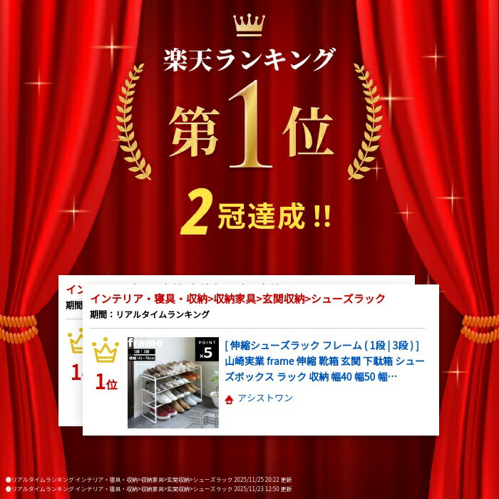 [ 伸縮シューズラック フレーム ( 1段 | 3段 ) ] 山崎実業 frame 伸縮 靴箱 玄関 下駄箱 シューズボックス ラック 収納 幅40 幅50 幅60 幅70 省スペース コンパクト スタッキング可能 パンプス ヒール 革靴 ホワイト ブラック 7209 7210 7555 7556