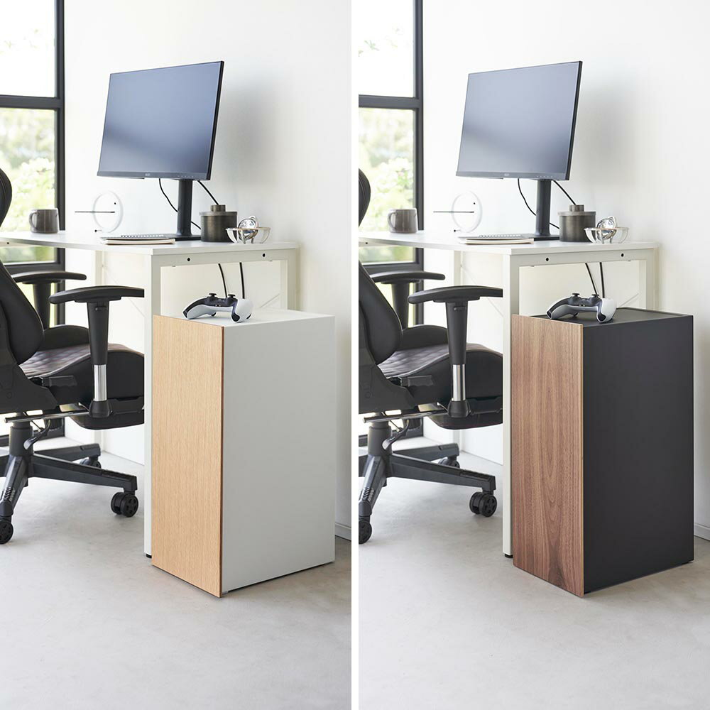 商品名 tower ゲーム機収納ラック タワー カラー(型番) ホワイト(2109) ブラック(2110) 商品サイズ 約W24.7×D36.5×H60.3cm 扉開口時:約W26.5×D58.5cm 重量 約10000g 内寸サイズ 天板(凹み部分):約W20.8×D30.8cm スライド棚上段:約W19.7×D33.8×H14cm スライド棚下段:約W7.5×D33.8×H17cm スライド棚上段から底面までの収納部:約W13×D34×H44cm スライド棚下段から底面までの収納部:約W8.7×D34×H26.8cm 素材 本体:スチール(粉体塗装) 扉:天然木積層合板 マグネット レール:スチール(ユニクロメッキ) クッション・ケーブルホルダー:シリコーン 付属品 ケーブルホルダー×2 耐荷重 天板:約2.5kg スライド棚上段:約1.5kg スライド棚下段:約1kg 本体底面:約5kg 原産国 中国 JAN ホワイト:4903208021098 ブラック:4903208021104 説明 ゲーム機やコントローラーを隠してすっきり収納できる機能的なラック。 リビングなどで雑然としがちなゲーム機やコントローラーなどを隠しながら美しく収納できる大容量のラックです。 棚は引き出し式になっていて奥の方に置いた物も取り出しやすい。 上部の棚はコントローラーを2つ並べても余裕のある広さ。 シリコーンのケーブルホルダー付き。 蓋との間にスリットがあり、充電しながら天板にコントローラーを一時置きできます。 裏は排熱穴がたくさん空いていてケーブルの抜き差しもスムーズ。 ※商品にゲーム機器等は付属しておりません。 ホワイト:97008105 ブラック:97008106■ tower ゲーム機収納ラック タワー ゲーム機やコントローラーを隠してすっきり収納できる機能的なラック。 棚は引き出し式になっていて奥の方に置いた物も取り出しやすい。 リビングなどで雑然としがちなゲーム機やコントローラーなどを隠しながら美しく収納できる大容量のラックです。 ゲーム機スッキリ収納アイデア集!