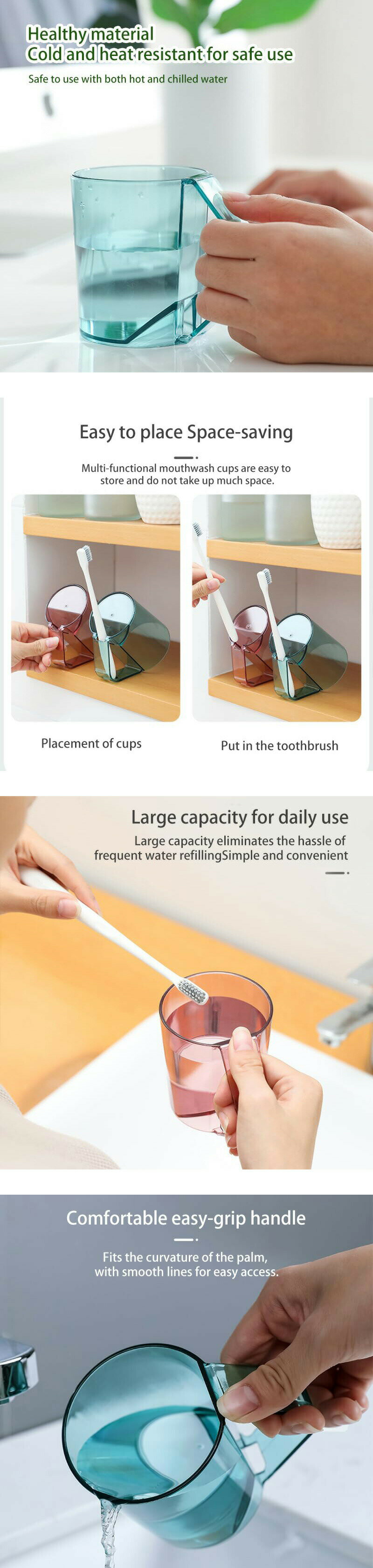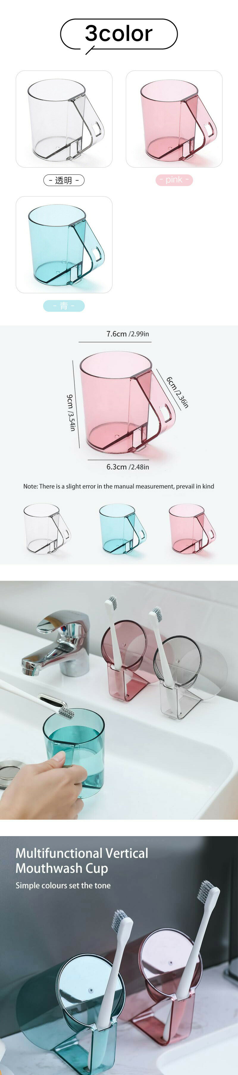 【カラー選べる2個セット】歯磨きコップ 水切れ 透明 プラスチック 抗菌 持ち手 タンブラー 自立 うがいコップ 歯ブラシ 収納 水が切れる スタンドマグ おしゃれ 6.3x7.6x9cm