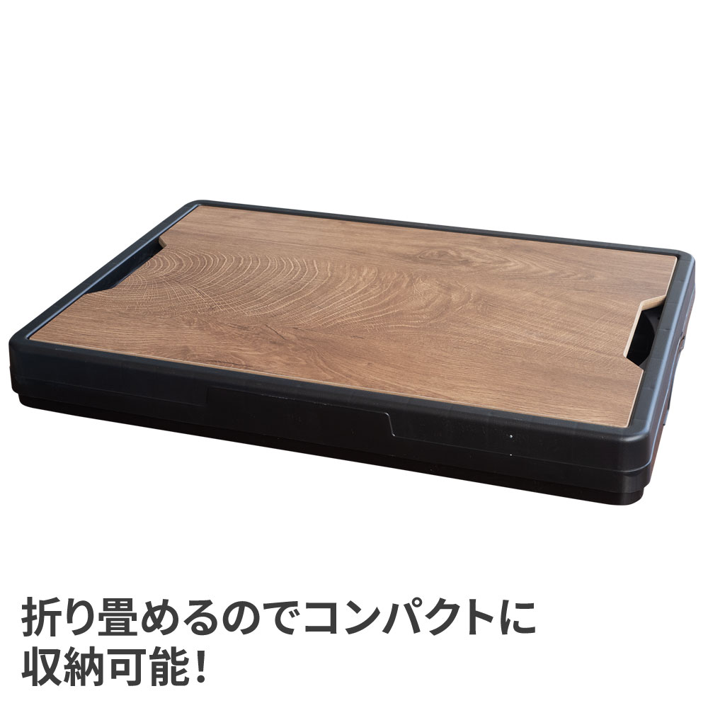 ■商品説明:便利な天板付きの折り畳みコンテナです。使わない時はコンパクトに折り畳むことが可能です。蓋を兼ねた専用天板が付いており、アウトドアなどでテーブルとして使用できます。屋内はもちろん、車のトランク内の整理、キャンプなどのアウトドアグッズの持ち運びに重宝します。展開時、折り畳み時を問わずピッタリと積み重ねが可能なので、複数使用時にも便利です。■商品仕様:・本体サイズ:W420×D285×H235mm(展開時)・本体サイズ:W420×D285×H55mm(折畳時)・重量:1.4kg・容量:22L・耐荷重:10kg(本体、天板)・材質:PP(本体)、MDF(天板)■注意事項:※本製品は収納機器です。本来の用途以外で使用しないでください。※積み重ねる際は、崩れないように注意してください。※天板を使用した状態では積み重ねないでください。※必ず耐荷重以下で使用してください。※防水仕様ではありませんので、悪天候時屋外での使用しないでください。※本製品に座ったり、乗ったりしないでください。