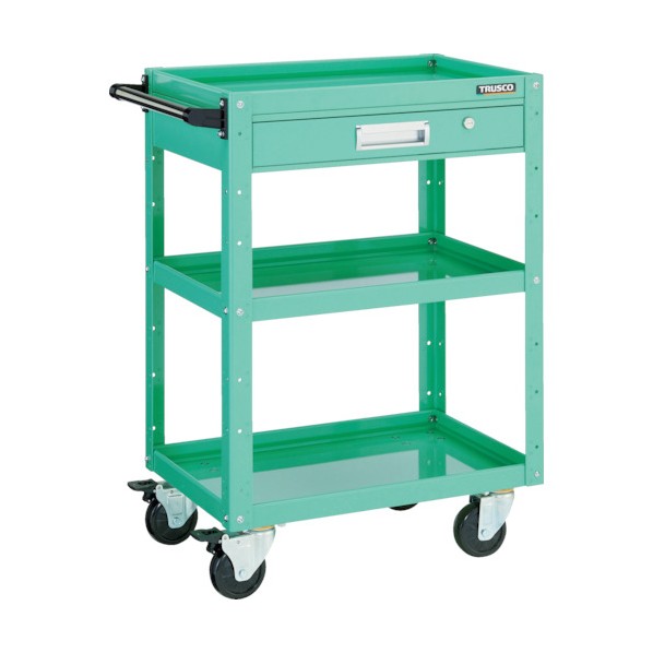 ■商品説明:工具の取り出しが簡単で、作業場所の近くで重宝するスチール製3段ツールワゴンです。ドライバーや長物の収納に便利なドライバーホルダーも付いており、各トレーは仕切りが無いため広々使えます。引き出しはセルフソフトクロージングレールを採用し、完全に閉じる手前から、ゆっくり自動的に閉まります。※セルフソフトクロージング機能は、引き出しが完全に閉じる約4cm手前で作動します。トレー全段、引き出しの傷防止保護マットが付属しています。■商品仕様:・本体サイズ:W770×D430×H800mm(ハンドル、ドライバーホルダー、キャスター含む)・重量:19kg・トレー内寸:W570×D380×H60mm・引出内寸:W470×D340×H60mm・キャスター径:Φ70mm・耐荷重:各20kg(トレー3段、引き出し共に)・ドライバーホルダー穴径:Φ10mm×12、Φ15mm×9、Φ20mm×6、Φ30mm×4・付属品:キャスター組立用薄口レンチ■注意事項:※こちらの商品は組立が必要です。組み立てには、19mm、10mmレンチ×各1本、PH3プラスドライバー1本が別途、必要です。※本製品の引き出しはセルフソフトクロージングレールです。無理に閉めますと引出レールが破損します。※柔らかく軟弱な床面、凹凸のある床面、傾斜のある床面などで使用しないでください。コンクリート製の硬く平らな床面で使用してください。※砂利や砂は、キャスターの回転部やベアリング部の隙間に侵入し、作動不良を生じさせます。キャスターの損傷、破損の原因となるので、砂利や砂のある床面では、使用しないでください。※凹凸のある床面、アスファルト製の床面は、振動が多くキャスターを摩耗させます。キャスターの損傷、破損の原因となるので、凹凸のある床面、アスファルト製の床面では、使用しないでください。※長距離移動は、キャスターを摩耗させます。キャスターの損傷、破損の原因となるので、作業場所までの移動は最小限としてください。※作業場所に設置するときや保管するときは、キャスターのロックをかけて、動かないことを確認してください。※各トレーの耐荷重は20kgです。必ず耐荷重以下で使用してください。■関連キーワード工具箱 ツールボックス 工具入れ ツールケース 工具入れボックス 工具収納 チェスト キャビネット アストロプロダクツ オリジナル商品→アストロプロダクツの工具箱ツールボックス一覧はこちら