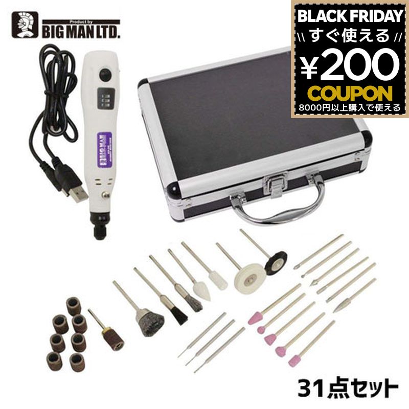 ■商品説明:小型で軽量なUSB有線式のルーターです。バッテリー残量を気にせず、安定した出力で連続使用することができます。ACアダプターはもちろん、モバイルバッテリーでの使用も可能です。握りやすく作業性のよいペン形状なので、模型工作や小さなプラスチック部品、小型部品などの細かな研磨、研削作業に適しています。Type-A、Type-C出力両方で使用できます。■商品仕様:・全長:128mm・重量:80g・無負荷回転数:17000min-1・コレットサイズ:Φ2.35mm・定格使用時間:15分・電源:DC5V 2A(USB Type-A、Type-C)・USBケーブル長:約1m・本体機能:LEDライト、過負荷保護、短絡保護・材質:ABS(本体)・付属品:USB変換アダプター■注意事項:※使用する先端具は、軸径Φ2.35mmで本製品の無負荷最高回転数(17000min-1)以上のものを使用してください。※PD対応のUSB Type-Cアダプターでは、使用できない場合があります。※USBアダプターの出力が弱い場合、十分な能力を発揮できません。※先端具が止まるほどの負荷を掛けないでください。※作業するときは、必ず保護メガネ(ゴーグル)、防塵マスクを着用してください。※巻き込まれる恐れがあるので、使用するときは各種手袋(グローブ)を装着しないでください。