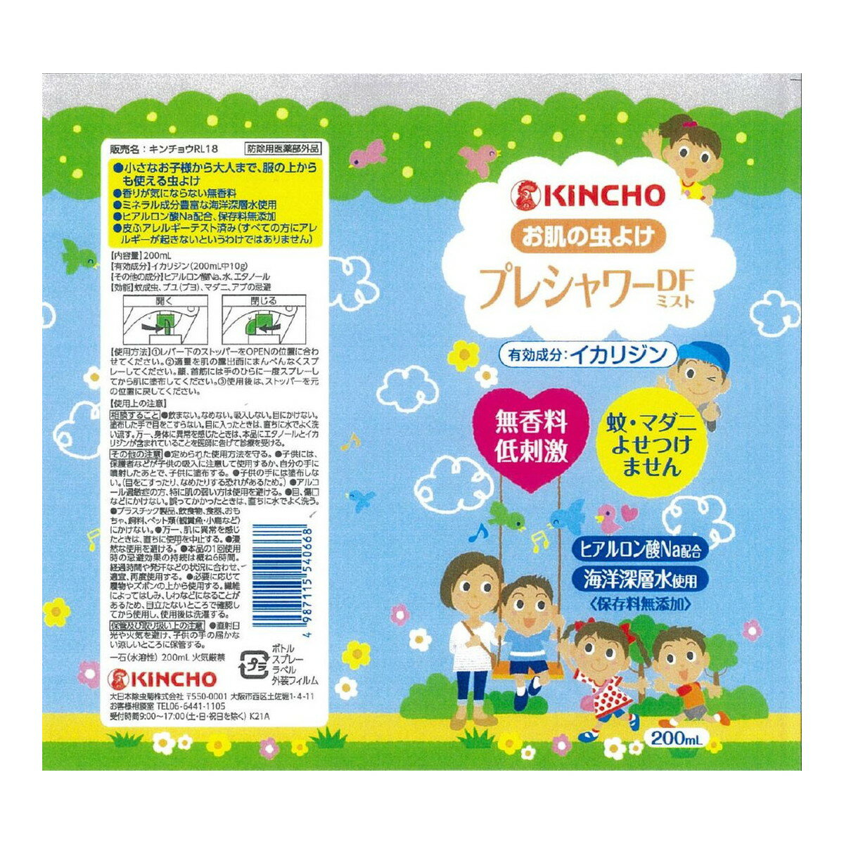 【春夏限定】金鳥 お肌の虫よけ プレシャワー DF ミスト 無香料 200ml(4987115540668)※無くなり次第終了