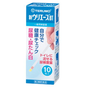 商品名:【第2類医薬品】新ウリエース BT 50枚内容量:50枚JANコード:4987350243737発売元、製造元、輸入元又は販売元:テルモ原産国:日本区分:第二類医薬品商品番号:103-c001-4987350243737□□□ 商品説明 □□□●試験紙に尿を直接かけて検査できます。試験紙部分に尿を約1秒間かけるだけ。コップに尿を採って検査することもできます。●すばやい判定。尿糖は30秒後、尿たん白は10秒後に判定できます。●判定はカンタン。見やすい色調表の採用で、中間色もひと目で比べられます。●トイレに流せて手間いらず。水溶性ですから、水洗トイレ(大便器)にそのまま流せます。カンタンで、衛生的です。●ビタミンCの影響を受けにくい。尿中にビタミンCがあると、判定が少なめに出ることがありますが、ウリエースは通常のジュースや果物の飲食による影響はありません。●試験紙が吸湿した場合、インジケーターがお知らせ。保管中に試験紙が湿気を吸って使えなくなった場合は、フタの裏側の吸湿インジケーターが、青→白色に変わってお知らせします。□□□ 使用上の注意 □□□使用期限120日以上の商品を販売しております□□□ お問い合わせ先 □□□テルモ文責:アットライフ株式会社 登録販売者 尾籠 憲一広告文責:アットライフ株式会社TEL:050-3196-1510医薬品販売に関する記載事項第二類医薬品広告文責:アットライフ株式会社TEL 050-3196-1510 ※商品パッケージは変更の場合あり。メーカー欠品または完売の際、キャンセルをお願いすることがあります。ご了承ください。