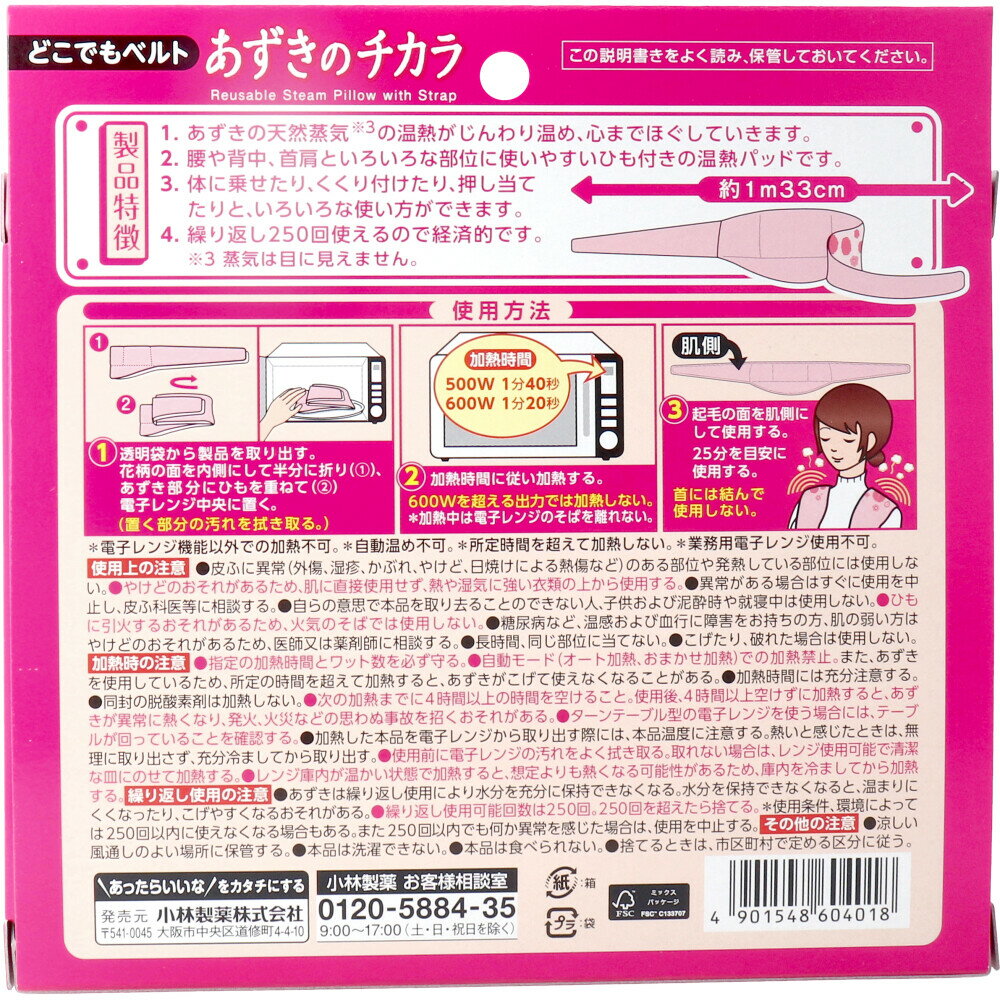 小林製薬 あずきのチカラ どこでもベルト 腰・首・背中・肩 いろいろな部位に使いやすい紐付きの温熱パッド(4901548604018)※パッケージ変更の場合あり