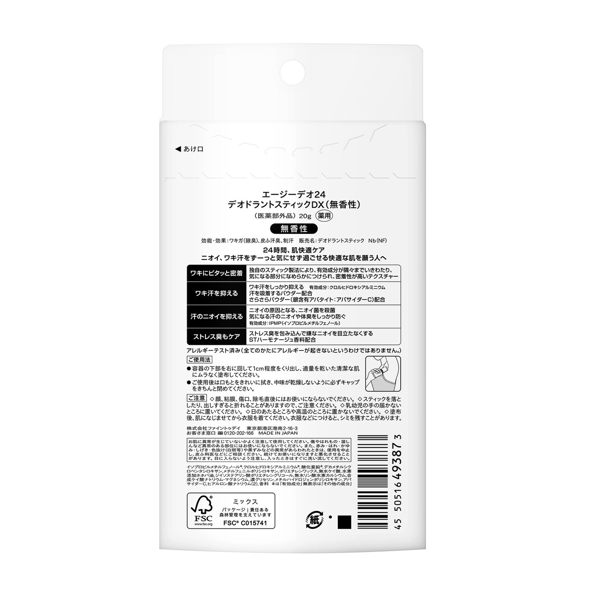 【送料込・まとめ買い×36個セット】ファイントゥデイ エージーデオ24 薬用 デオドラントスティックDX 無香性 20g