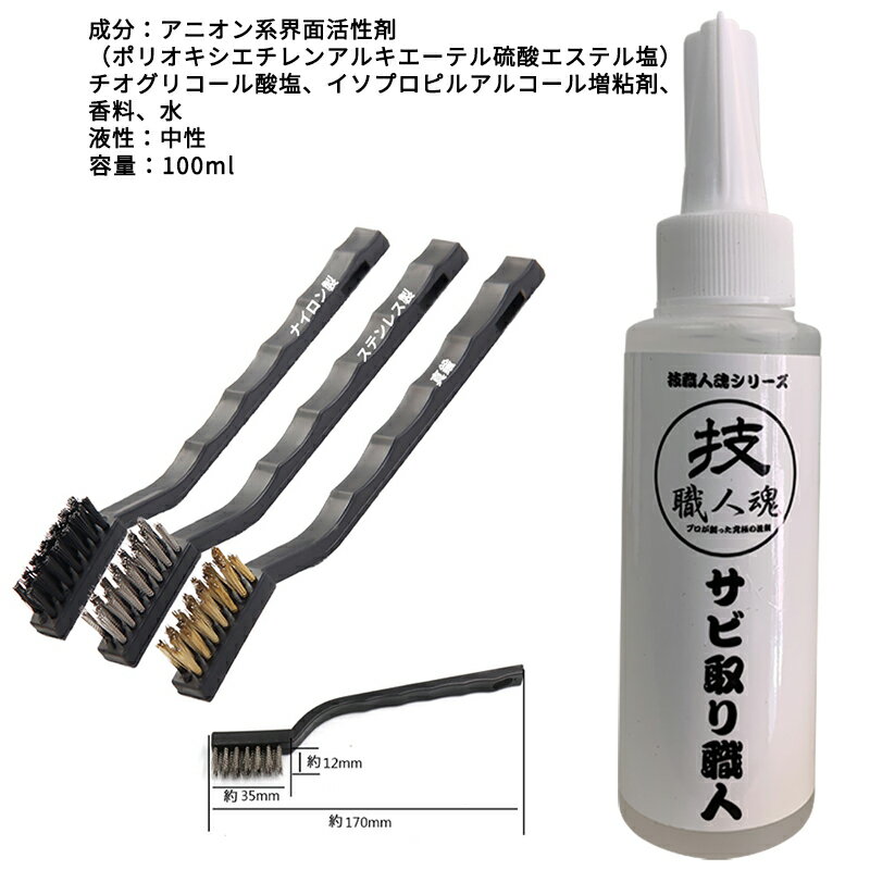 【新春ポイント10倍アップ祭1月1日-4日】【こだわりの日本製】サビ取り 100ml 強力サビ取り剤 サビ取り職人 錆転換剤 サビ落とし さび 錆 除去 洗剤 かけるタイプ ワイヤーブラシ3本