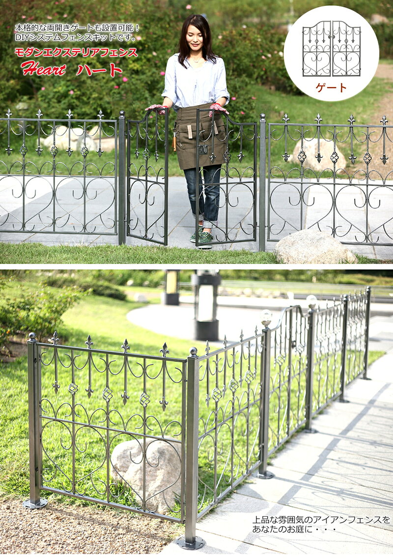 モダンエクステリアフェンス ハート用 ゲート 両開き単品 アイアンゲート アンティーク ガーデンゲート ペット ゲート 金具 高さ 90cm 犬 屋外 アイアン 猫 脱走防止 出入口 庭 フェンス 扉 ガーデン ドア 門扉 玄関 門 diy ief-mdgt90