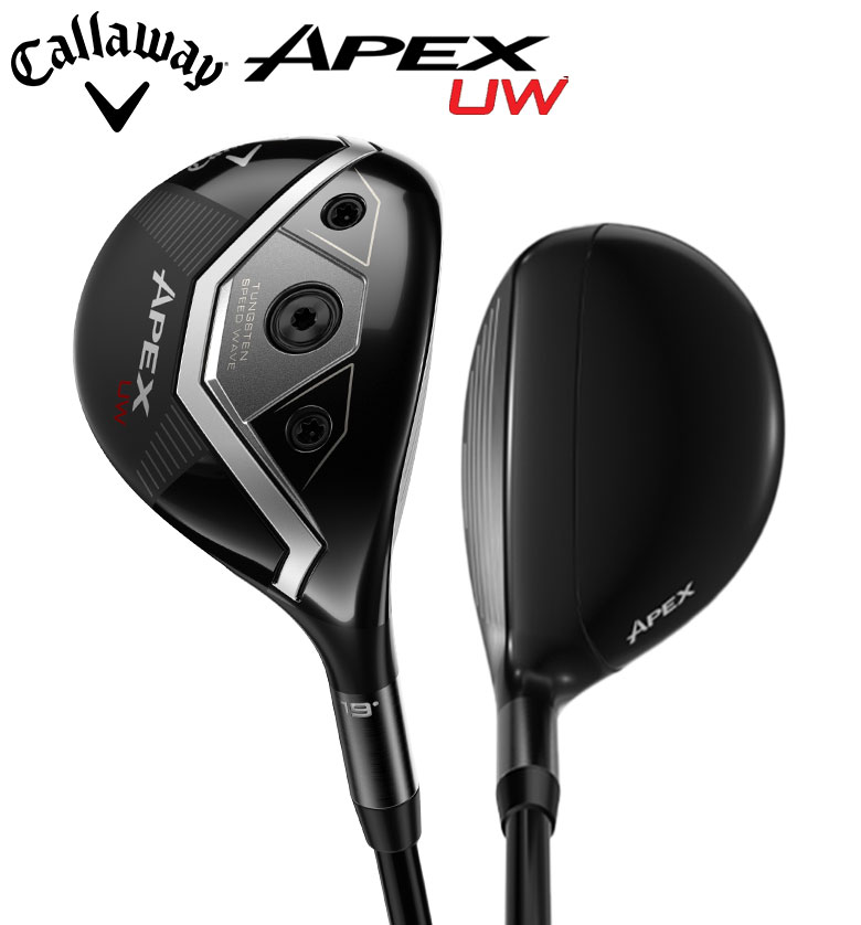 この商品の特徴即日出荷ヘッドカバー付属フレックスについて▲ヘッドカバー人気の初代型シェイプを復活させ、 さらなるパフォーマンスアップも実現フェアウェイウッドとユーティリティの利点を合わせ持つ「APEX UW」が、2023年モデルから約2年を経てのリニューアルとなりました。最新バージョンでは、現在も多くのプロに愛用されている初代(2022年1月発売)のシェイプとステップ・ソールデザインを復活させながら、随所にブラッシュアップも敢行しています。フェースには、Ai 10x FACEを開発した技術を踏襲しつつ、今作に合わせた仕様となっているAi APEX FACEを導入。ヘッド内にはELYTEシリーズのフェアウェイウッドで登場のタングステン・スピードウェーブも搭載し、スキルレベルの高いプレーヤーが好む弾道、スピン量、コントロール性を追求しています。ロフトは、17度、19度、21度、23度の4種類をラインアップ。クラブ長さでは、新たに0.75インチの差をつける設定としており、より飛距離の違いが出るようにもなっています。■ステップ・ソールデザインで抜群の抜けの良さフェアウェイウッドとユーティリティの良い部分(フェアウェイウッドは打ち出し角とスピン量、ユーティリティは操作性)を組み合わせたクラブとして開発され、2022年1月に初代、2023年中盤に2代目が発売された「APEX UW」ですが、今回は、現在もスタッフプレーヤーやツアープロが多く使用している初代モデルをブラッシュアップしたスタイルとなりました。ほぼ2022年モデルを踏襲したヘッドシェイプは、操作性の高さを感じさせるコンパクトなもので、ソールには当時初登場となったステップ・ソールデザインも採用。抜群の抜けの良さを発揮します。 ■UWバージョンとして設計されているAi APEX FACEフェースには、「Ai APEX FACE」が導入されています。これは、ELYTEシリーズで登場したAi 10x FACEのAPEX UWバージョンとも言えるもので、このモデルのターゲットとなるスキルの高いプレーヤーのリアルなデータを生かしながらAiが設計した最新のフェースです。コントロールポイントが従来のAI設計フェースよりも大幅に増えており、打点位置ごとに最適なスピン、打ち出し角へと補正。優れた強度を持ち、反発性能が高いことで知られるマレージング鋼C300をフェースカップ構造にて採用。驚異のボールスピードを実現しながらも、バラつきの少ない着弾範囲を実現します。■クラウンにはカーボンを使い、ホーゼルも長めに ほかにも、2021年モデルから進化した部分があります。まず構えたときに目に入るのが、クラウンをフェース側と後部に分けるように入っているラインで、カーボン製のクラウンが採用されていることがすぐにわかります。素材は、トライアクシャル・カーボンとなっています。また、ホーゼルは 2023年モデルよりも、やや長く設計されています。これらは、後述の重量配分の最適化に関係している部分です。■タングステン・スピードウェーブをヘッド内に搭載ソール前方には、スクリューウェイト(5g)が搭載されていますが、その両側に2つのビスがあることからもわかるように、ELYTEシリーズのフェアウェイウッドで登場したタングステン・スピードウェーブも内蔵されています。ヘッド内で浮いたようなスタイルで搭載されているもので、フェースのたわみを損なうことなく、トップに近いインパクトであってもしっかりとボールを高く遠くへ打ち出すことを可能にしています。なお、このタングステン・スピードウェーブは、単に重心を低くしてボールの上がりやすさややさしさを求めているものではありません。プロや上級者が求める弾道、スピン、コントロール性を備えるべく、前述のカーボン製クラウンや長めのホーゼルとバランスを取りながら、最適な重量配分を追求したものとなっています。スクリューウェイトは、プレーヤーごとに、さらに好みのフィーリングへと調整できるようにする役割を担っています。■番手間で0.75インチの差をつけたクラブ長さ新しい「APEX UW」は前作同様、ロフト17度、19度、21度、23度を用意しています。ただし、前作などでは、2度刻みのロフト差により、距離のピッチがはっきり出にくかった面もあったということで、クラブ長さが変更されています。前作の17度と19度はいずれも41インチでしたが、17度を41.75インチ、19度を41インチに設定。同様に、40.5インチだった21度は40.25インチ、40.0インチだった23度は39.5インチです。つまり、番手間の差は0.75インチずつになっているということになります。▲TENSEI BLACK SILVER 70 for Callaway カーボンシャフト▲Callaway Tour Velvet ラバー ブラック/ホワイト バックライン無しスペック番手17°19°21°23°フェース素材/構造マレージング鋼C300/Ai APEXフェース/フォージドフェースカップボディ素材17-4 ステンレススチール + ソールウェイト約7gロフト角(°)17192123ライ角(°)58.35959.860.5ヘッドの体積(cc)126126126120クラブの長さ(インチ)41.754140.2539.5クラブの重さ(21°)約360g約358gバラ