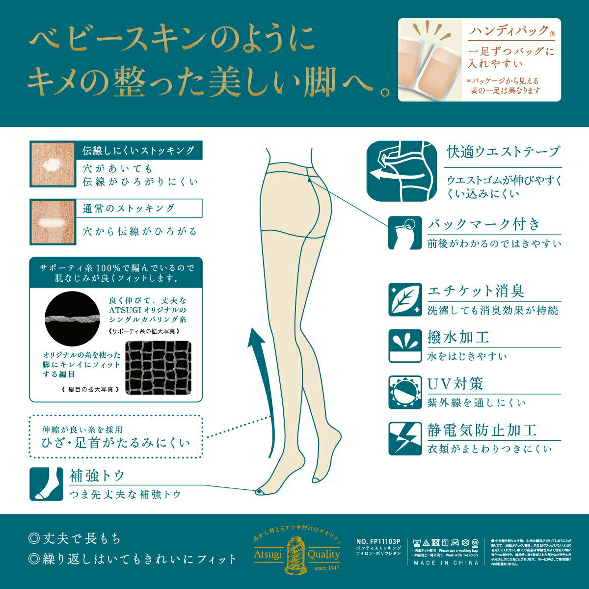 【11/18限定P10倍】アツギストッキング つま先補強 UV 格安 3足組 パンスト 黒 ベージュ なめらかで美しく FP11103P 静電気防止 伝線しにくい つま先補強 パンスト パンティストッキング 3足組 レディース 美脚 吸汗 丈夫 無地 肌色 冠婚葬祭