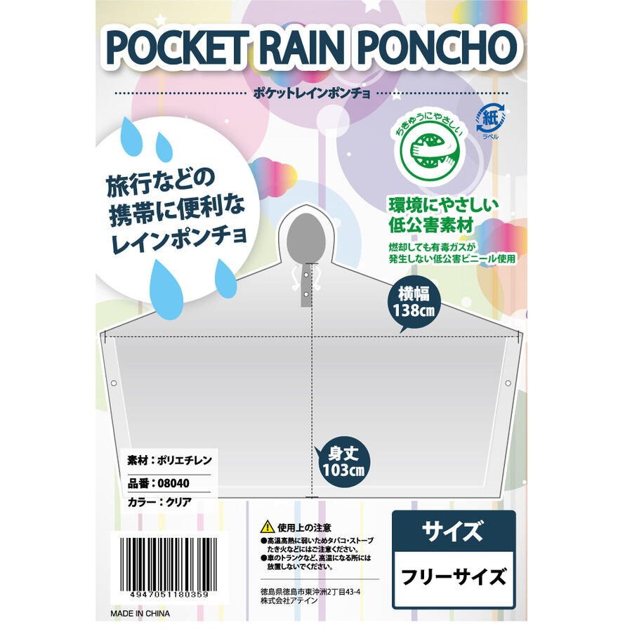 商品情報素材ポリエチレンサイズフリーサイズ色クリア取り扱いについて商品パッケージに記載の「使用上の注意」に基づいてのご使用・管理をお願い致します。携帯用 ポケットレインポンチョ 高耐久 低公害ビニール素材 男女兼用 旅行用品 雨具 レインジャケット レインスーツ カッパ 【低公害ビニール素材使用】携帯用レインポンチョ 【スポーツ観戦やレジャーにお勧め】携帯用ビニールレインポンチョ スポーツ観戦やレジャーでの突然の雨に備えて、携帯に便利なビニールレインポンチョです。環境に配慮した燃やしても有害ガスが発生しない低公害ビニール使用。塩化ビニールのようなベタつきがなく、柔らかく軽い着心地のレインポンチョです。男女兼用で着られるフリーサイズとなっております。 コンパクトに収納可能な携帯性 柔らかく軽い着心地 環境に配慮した低公害ビニール素材 1