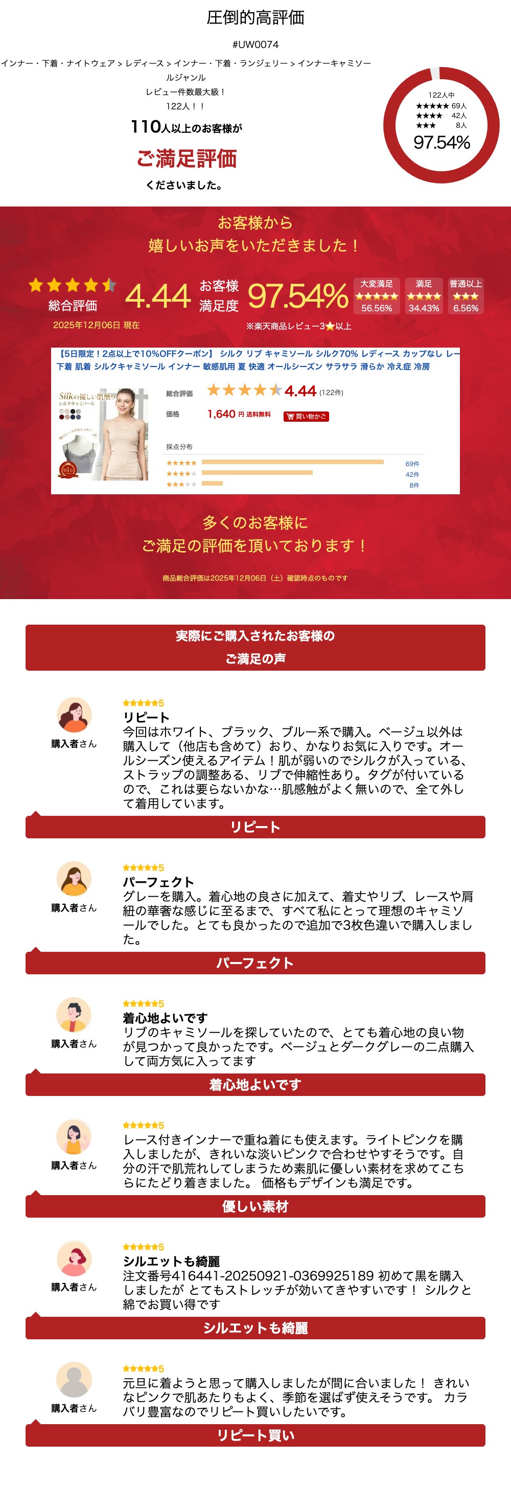 関連商品【5日限定!2点以上で10%OFFクーポン】 シルク キャミソール シ...【1枚336円〜!5枚セット購入で】キャミソール レディース カップな...【5日限定!2点以上で10%OFFクーポン】 ニップレス 20枚セット...1,740円580円1,584円【1,566円!2点以上10%OFFクーポン利用で】 シルクブラ ナイ...シルク ショーツ レディース パンツ シルク100% シルクショーツ ...【5日限定!2点以上で10%OFFクーポン】 シルク ブラジャー シル...1,740円1,246円2,980円【5日限定!2点以上で10%OFFクーポン】 密着 ヌードブラ ヌーブ...シームレス ショーツ 5枚セット 10枚セット レディース シームレス...【5日限定!2点以上で10%OFFクーポン】 ニップレス 2枚セット ...640円740円464円シームレス ショーツ レディース 響きにくい ひびかない ノーライン ...【5日限定!2点以上で10%OFFクーポン】 シルク インナー 長袖イ...【5日限定!2点以上で10%OFFクーポン】 ルームウェア 上下セット...522円2,340円1,788円素材 シルク70%+綿30% サイズ フリーサイズ サイズ目安:着丈:50cm セット内容 レースキャミソール 商品説明 シルクとコットンでできたレースキャミソールは、上品でエレガントなデザインが特徴的です。 柔らかく滑らかな肌触りが心地よいです。 また、レースのデザインがアクセントとなり、女性らしい印象を与えます。 通気性も良くムレにくいのが魅力的です。 ストラップは調節可能で、自分に合ったサイズに調整できます。 普段使いはもちろん、特別なシーンにもぴったりなキャミソールです。 また、シルクとコットンのブレンド素材は、肌に優しく、お手入れも簡単なので、長く愛用できます。 注意事項 ・表記サイズに関しましては、平置きにて採寸したおおよそのサイズとなります。多少の誤差が生じる場合がございます。 ・生産時期やご使用のパソコンモニターの種類や設定により、実物と色の見え方が異なる場合がございます。 ・説明書・パッケージは英語、もしくは中国語の表記の場合がございます。・予告なく多少の仕様変更がある場合がございます。 レーストリム付き レディース用 シルクタンクトップ レースキャミソール 絹キャミソール レース付きキャミ ノースリーブレースキャミソール シルクのキャミソール フェミニンな シルクキャミ シルク製レースキャミソール シルクキャミトップ フロントレース