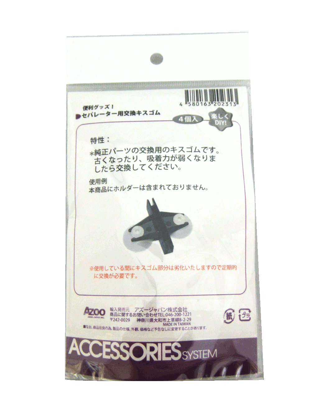 商品説明 ■セパレーター用交換キスゴム 4個入り 純正パーツの交換用のキスゴムです。古くなったり、吸着力が弱くなりましたら交換してください。 ※使用している間にキスゴム部分は劣化いたしますので定期的に交換が必要です。
