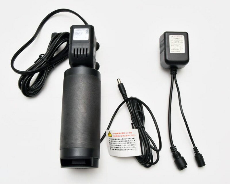 商品説明 ■リオプロップ UV 7W 水中殺菌灯 東日本用 【50Hz】 ポンプと殺菌灯が一体化。病気リスクの低減、アオコ、白濁りの除去に。 ホース配管不要で簡単に設置できます。 飼育水中の細菌、真菌、寄生虫などを殺菌・駆除。 ■製品の特徴 ●高い殺菌力&有機物分解性能を発揮する3つの工夫 1.容量を大きくし、紫外線照射時間が長くとれる構造になっています。 2.大流量ポンプが通水量を上げ、トータルで高い殺菌力を発揮します。 3.ハウジング内部にステンレス反射板を採用し、紫外線利用率を高めています。 ●ポンプと殺菌灯の同軸一体化により配管不要で簡単に設置可能。水中内でコンパクトに設置できます。 ●幅広の吐出口で、大流量ながらゆるやかな水流です。 ●ポンプと殺菌灯の電源を1つのコンセントにまとめた2in1電源アダプター採用。 ●淡水/海水両用 ■効果 飼育水中の細菌、真菌、寄生虫などを殺菌、駆除す病気リスクを低減します。 白濁除去、透明度の高い輝く水づくりに。 本製品によって飼育水が完全な無菌状態になったり、アオコや白濁が100%除去できるものではありません。飼育環境によって後納、効果が変わります。 ■仕様 本体サイズ:約直径80×高さ220mm 重量:約590g コード長:約1.8m 製品トータルでの定格消費電力:約12W 原産国:台湾 ●UV放電管ユニット 定格電圧:AC100V 定格周波数:50/60Hz(共用) 定格消費電力:7W UV放電管寿命:約8000時間 ●ポンプユニット 定格電圧:AC100V 定格周波数:50Hz 定格消費電力:4W 通水量:約450L/h 適合水量:最大約200L(目安) 適合水温範囲:10~35℃ ※本製品は周波数(Hz)別に製造されています。ご購入の際は周波数(Hz)をご確認ください。 ※本製品に含まれるポンプは耐紫外線樹脂を使用した専用品です。既存製品のリオプロップ1000は使用できません。 UV放電管から照射される紫外線は目や皮膚に有害です。UV放電管の光を直視したり、皮膚に近づけないでください。交換、点検の際は、必ず2in1電源アダプターの電源プラグをコンセントから抜き、通電を停止させた状態でおこなってください。