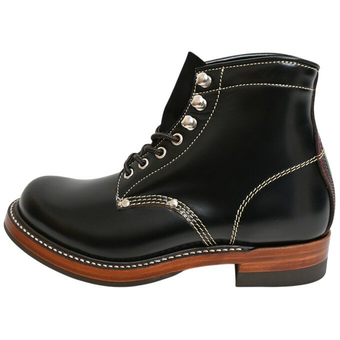 ●商品名:TMA2001 トイズマッコイ ●カラー:ブラック ●靴幅(ワイズ):E ●ガラスフィニッシュ ●商品サイズ(US) ●7 1/2:25.5cm ●8:26cm ●8 1/2:26.5cm ●9:27cm ●9 1/2:27.5cm ●10:28cm ●ワークブーツ"サーヴェイヤー" ブラック ヴィンテージのワークブーツがもつ丁寧な作りや経年によるエイジング、細かなディテールを追求したプレーントウのオリジナル。 ガラスフィニッシュレザーをマテリアルにし、異なるステッチカラーを用いたバックステイや装飾の意味も兼備した補強リヴェット、そしてヴィンテージには欠かせないキャッツポウソールなど語り尽くせない魅力が凝縮されている。