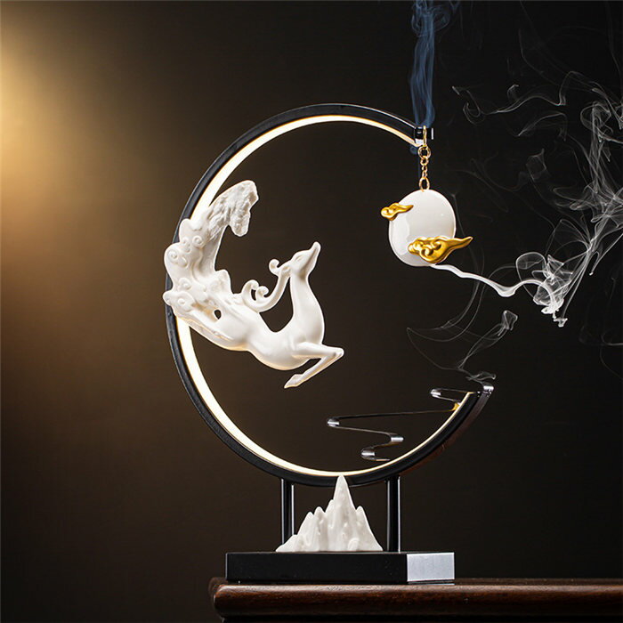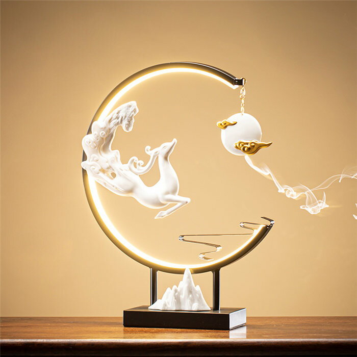 LEDライト 台座 倒流香 香炉 お香ホルダー 流川香 香炉用品 セラミック 置物 開運 風水 ドラゴンボール お香立て 幻想 インテリア 置物 香り 仏具 煙 煙逆流 瞑想 幻想 プレゼント 贈り物 ご褒美 おしゃれ 工芸品 飾り陶芸 USB接続 ナイトライト間接照明