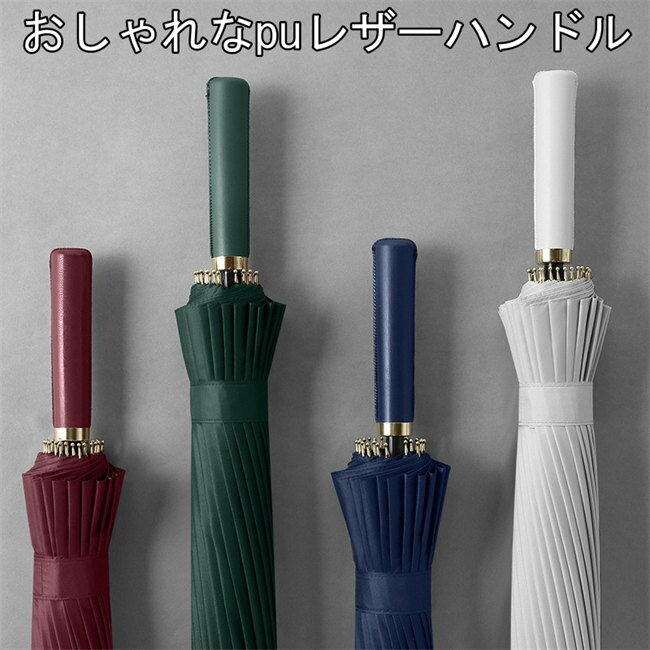 9色展開 傘 晴雨兼用 24本骨 長傘 レディース メンズ ジャンプ式 レザーハンドル ストレートハンドル 軽量 軽い 雨傘 日傘 男女兼用 UVカット 紫外線カット 撥水 抗風 耐久 頑丈 豪雨対策 ワンタッチ 折れにくい ロング傘 おしゃれ 実用的 ギフト