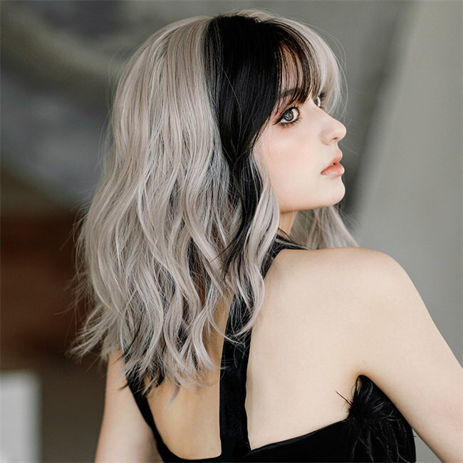 ブラックピンク 切替 43cm ウィッグ ショート ボブ 短髪 ショート 巻き毛 フルウィッグ かつら 前髪 可愛い 耐熱ウィッグ コスチューム 仮装 自然 普段使い レディース ウィッグ アッシュ 日常 ウェーブ 大人用 つけ毛 小顔効果 原宿風