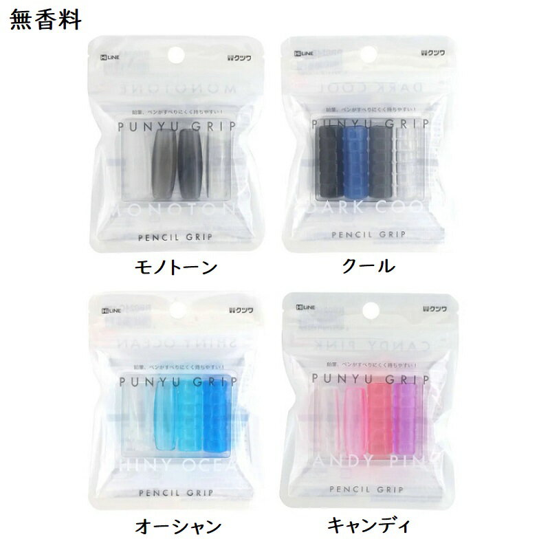 【共通 特徴】 ・文具一筋創業110年の老舗「クツワ」製 ・鉛筆、シャープペンシル、ボールペン、タッチペンなどにつけて疲れにくく持ちやすくするグリップ ・直径8mm程度の筆記具につけられます 【無香料 特徴】 ・シンプルカラーで、丸・三角型のプニュグリップ ・使わないときの保管にも使えるチャック付き袋 ・4本入り 【香り付き 特徴】 ・フルーツやドリンクの香り付 ・4本入り(ミニタイプは8本入り) 【持ち方矯正 特徴】 ・鉛筆の正しい持ち方が習慣づく ・正しい指の位置にくぼみがある ・3本入り 【プニュスパイラル 特徴】 ・細軸(約8mmの細いタッチペン等)から太軸(約14mm多色ボールペン等)の筆記具に取付できます ・やわらかいエラストマー素材で疲れにくく、スパイラル形状が指にフィットします ・巻いて付けるので付け外しが簡単です 【仕様】 サイズ:(ミニサイズ)φ13~15×H20mm、1.5g~1.8g (フルサイズ)φ13~15×H39mm、2.7g~3.6g (プニュスパイラル)H55×W12×D12mm、2g