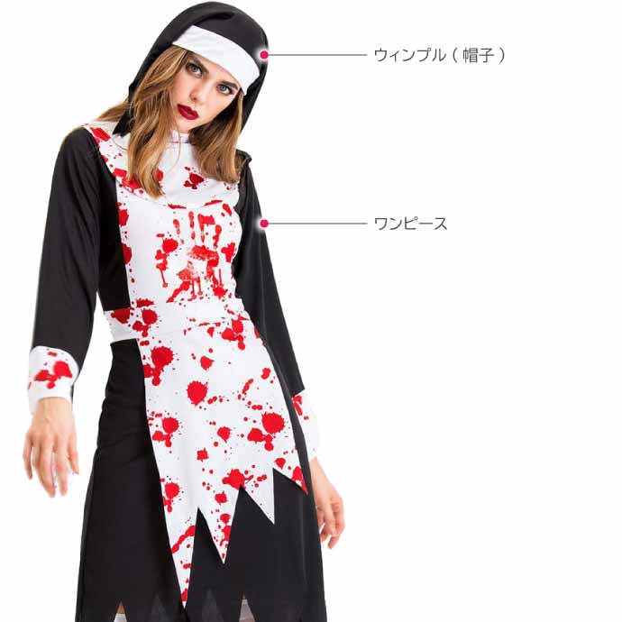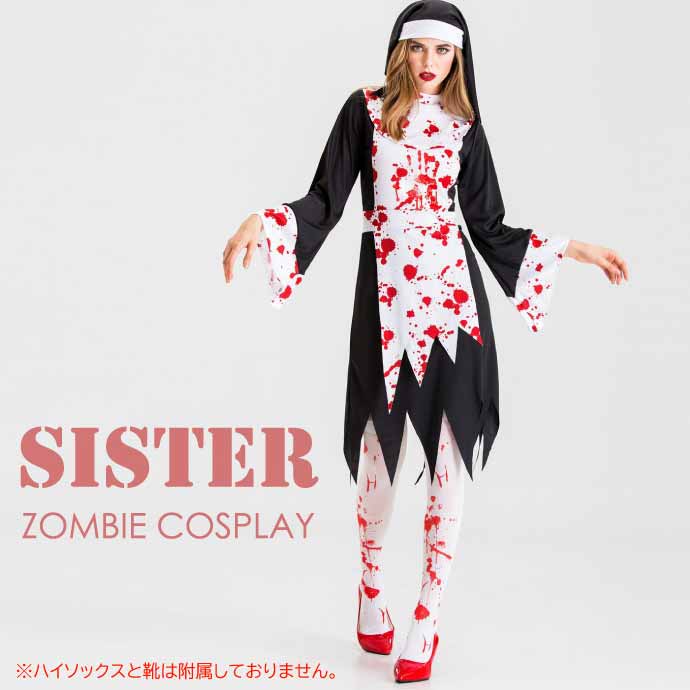 ハロウィン コスプレ 仮装 シスター S ゾンビコスチューム ハロウイン Halloween 血まみれ 衣装 聖女 イベント パーティ Rk627