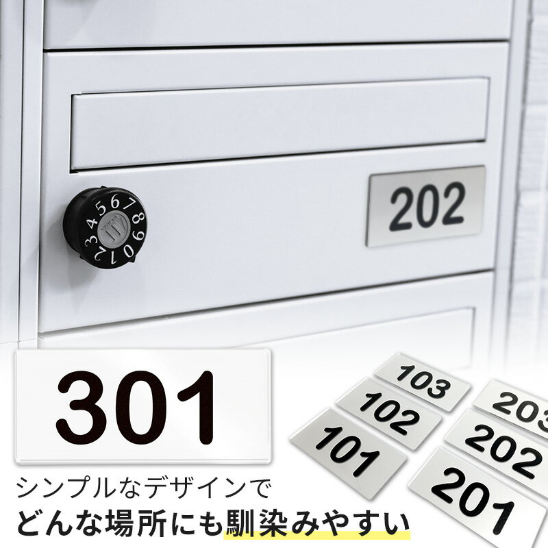 Anvis ルームナンバー 部屋番号 マンション ポスト ロッカー 数字 サイン プレート 防水 表札 アパート 玄関 ドア 郵便受け 宅配ボックス 屋外可 アクリル製 シルバー 両面テープ