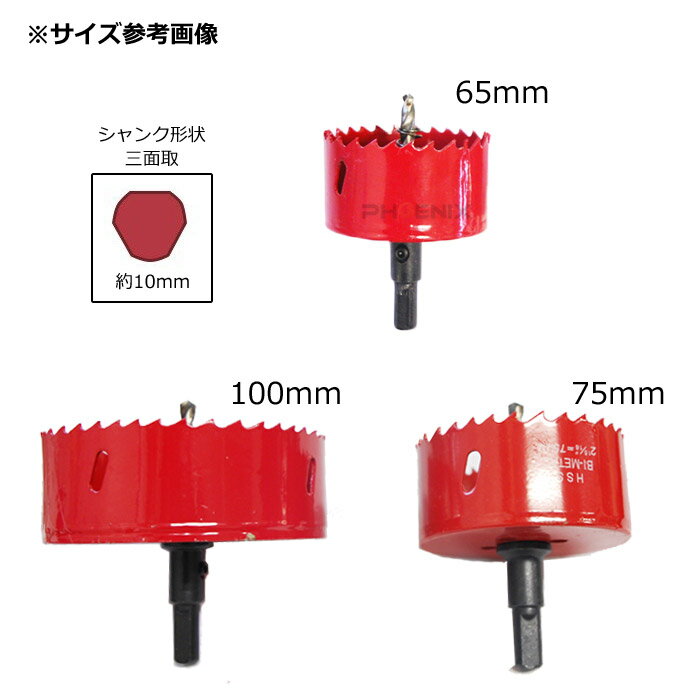 ホールソー バイメタルホールソー ホルソー ホールカッター 鉄板 など 穴あけ 先端工具 先端ドリル 工具 切断工具 65mm / 75mm / 100mm ばら売り 1個