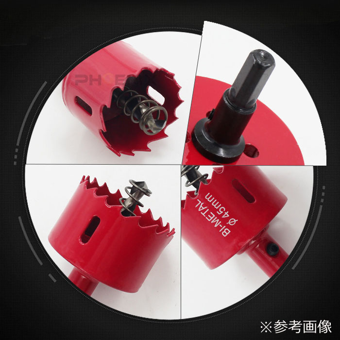 No-7498■商品内容:バイメタルホールソーx1 ■カラー:レッド(赤) ■サイズ:65mm / 75mm / 100mm ■材質:M42 ●アルミ板、鉄板、木材、プラスチック、石膏ボードなどの穴あけに! ●電動ドリル等に取り付けてご使用ください。 ※部材に対して垂直にご使用ください。切削中に角度を変えないでください。 ※押し付けるように力任せに切ろうとしないでください。 ※作業時に切削油の併用を推奨。 (工具の破損リスクを低減し、仕上げ精度の向上に効果を発揮します) ※説明書は付属しておりません。 ※使用方法や取付方法のサポートは行っておりません。お客さまにてお調べをお願いいたします。 ※商品ご使用の際の直接・間接の損害については、弊社ではその責任を一切負いかねます。 ご了承の上、お客様のご責任の元、ご使用ください。 ※ディスプレイ画面等の環境上、写真と実際の商品の色とは多少異なる場合がございます。 ※生産ロットによりロゴ・デザイン・細部の形状等仕様変更になる場合がございます。 ※輸入品のため、輸送や保管の際に発生した多少の傷や汚れがある場合がございます。 ※簡易包装となります。