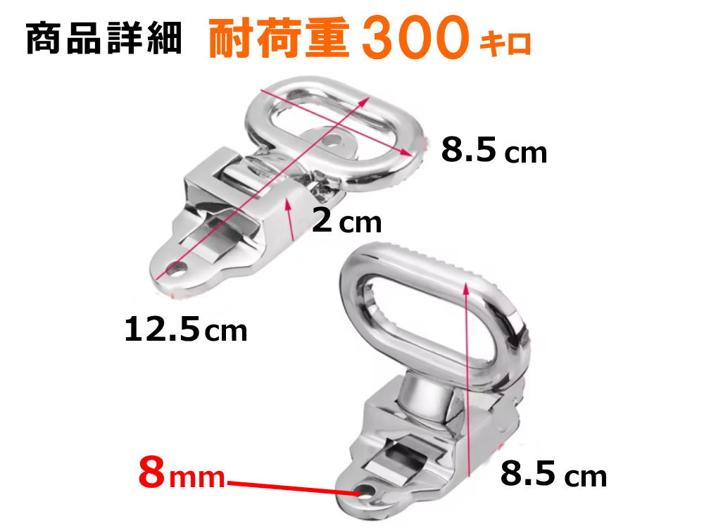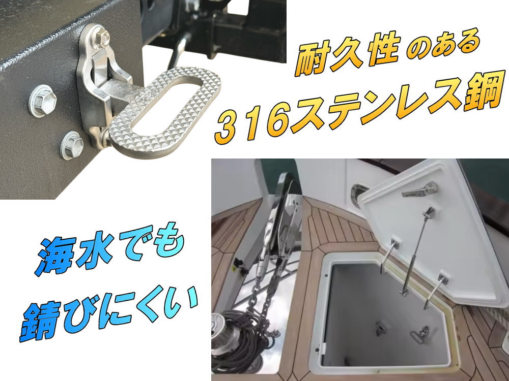 ★★商品説明★★ 耐久性に優れた316ステンレス 折りたたみ式ステップ 海水に強く錆びにくい。ボートやヨットの足掛けにおすすめです。 SUV等の車高が高いお車の昇降補助 トラック、軽トラの荷台はしご等としても大活躍 サイドステップにしてもリアステップにしても良し! 消防車にも取り付けされています。 使用しないときは折りたためるので邪魔にならず見た目もスッキリ 穴あけ、またはプレート等をご用意しお好きな箇所に固定する事が出来ます。 【商品詳細】 材質:316ステンレス鋼 穴の内径:8mm 耐荷重:300kg 【注意事項】 多少の擦れ傷、汚れがある場合がございます。 足を置く部分は鏡面では御座いません。 ネジをご用意下さい。 ★★発送方法/送料★★下記【全国送料表】をご確認下さい。複数の商品を同梱可能です。※同梱をご希望の場合、必ず同じお買い物カゴ(カート)でご注文下さい。※別々のお買い物カゴで注文された場合は別々に梱包し発送致します。その為、送料・代引き手数料は発送個数分請求させて頂きます。★発送に関する注意事項★---------------------------------------- 当方指定宅急便ですので配送業者は選択できません。 時間指定は対応いたしておりません。発送連絡に記載の問い合わせ番号でご自身でご確認頂けます。離島への発送は行っておりません。 ----------------------------------------★商品代引★ 宅急便送料+別途手数料370円 休業日 商品ページ左バナーカレンダーに記載★★支払方法★●楽天銀行 振込●商品代引●クレジットカード決済●コンビニ決済(前払い)●後払い決済