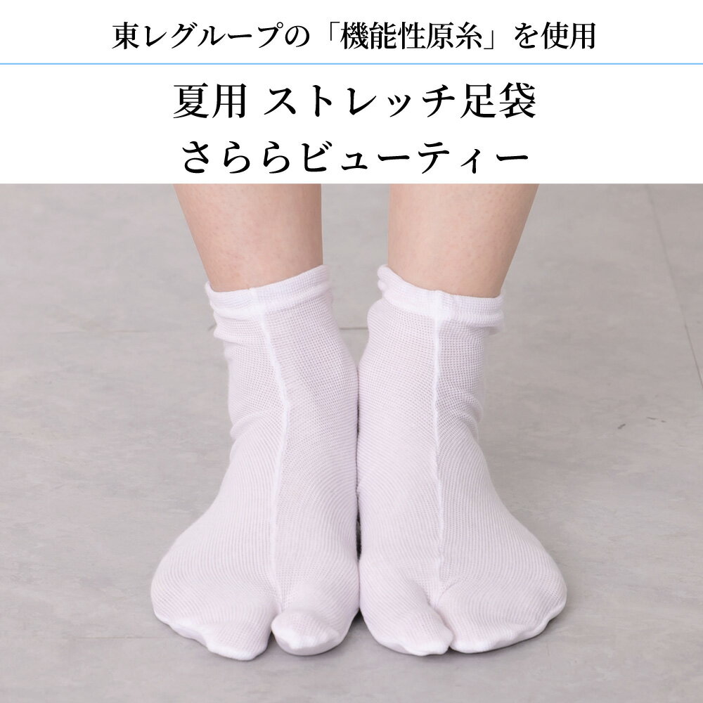 ストレッチ 足袋 レディース 夏用 さららビューティー 白色 [22.5〜24.5cm]|足袋 フリーサイズ 吸汗 伸縮性 快適 清涼 東レ 口ゴム 足袋