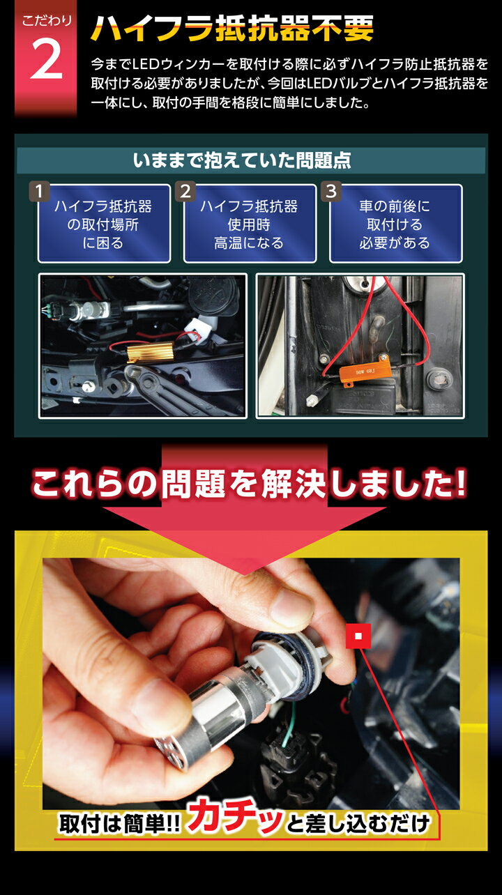 メーカー希望小売価格はメーカーカタログに基づいて掲載しています 商品保証期間 ・ルームランプ商品:1年間 ・その他LED商品:6か月 ・カーボン商品:6か月 ・その他商品:3か月 商品の特長 高輝度チップ CSP1860採用! 4方向にLEDが搭載されており、全方向を照射します! アルミ製シルバーケースとホワイトレンズによってステルスバルブのような装着感を実現! ハイフラ防止機能を搭載している為、抵抗器不要です! 冷却ファン、アルミ台座を採用し放熱性をUPしています! 無極性で取付も簡単です! 対応車種 ホンダ シビックハッチバック【型式:FL1/4】 ホンダ シビック タイプR 【型式:FL5】 ※適合に関してご不明点が御座いましたらお問い合わせください。 ※必ずサイズをご確認の上、お買い求めください。 取付箇所 ウィンカー ※当商品をウィンカー以外の目的で使用しないでください。以上発熱や発火の恐れがあります。 セット内容 T20 LEDバルブ 2個1セット カラー オレンジ 使用上のご注意 ※ウィンカーやハザードを長時間点灯させた際、放熱が間に合わずハイフラ現象を起こす場合が御座います。 長時間のご使用後は、放熱するまで少し時間を置いてからご使用下さい。 ※ハイブリッド車、スマートストップ機能搭載車など、車種によってはウィンカーやハザードを使用中にファンの回転音が聞こえることが御座いますので予めご了承ください。 その他 ホンダ シビック シビックタイプR FL アクセサリー パーツ 純正 エクステリア カスタム LED バルブ ウィンカー T20 オレンジ アンバー ピンチ部 違い ハイフラ 抵抗 冷却ファン