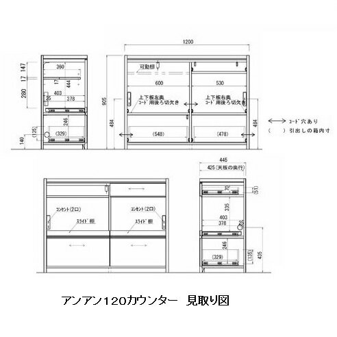 商品説明サイズ■アンアン90カウンターW900mm×D445mm×H905mm(天板高875mm) 13.7才■アンアン120カウンターW1200mm×D445mm×H905mm(天板高875mm) 18.2才■アンアン144カウンターW1440mm×D445mm×H905mm(天板高875mm) 21.8才材質■主材:アルダー無垢/ウレタン塗装■天板:人工大理石(石目)色2色対応(NA/WT)商品説明 ■アンアンカウンターは裏面はフラット仕上げになっているのでお部屋の間仕切りに最適です。■家電収納もできキッチン小物がすっきり収納できます。■天板はキズ・汚れに強い人工大理石を使用しています。■前板にアルダー無垢材を使用し、高級感を出しています。■左オープン部内寸:W600mm×D423mm×H443mm。■引出し下オープン内部寸:W530mm×D423mm×H335mm。■90・144カウンタ0開き扉内 棚板2枚 生産国日本