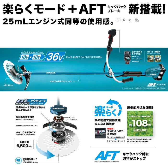マキタ 充電式 草刈機 18V + 18V 36V MUR368UDCF エンジン25ccクラスと同様 Uハンドル 刈払機 4.4kg バッテリー・充電器付属