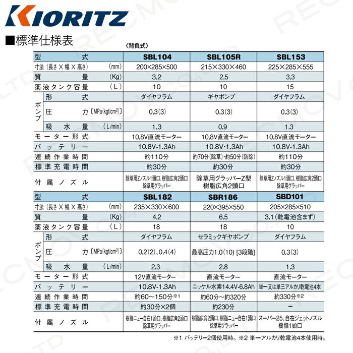 共立 噴霧器 SBL153寸法(長さ×幅×高さ)(mm):225×285×555 本体乾燥質量(kg):3.3 薬液タンク(L):15 ポンプ形式:ダイヤフラム式 ポンプ圧力(MPa):0.3 吸水量(L/min):1.3 付属ノズル:除草用Zノズル1頭口・樹脂広角2頭口・除草グラッパー バッテリー:リチウムイオンバッテリー10.8V バッテリー容量(Ah):1.3 連続作業時間:約110分 ※使用後はタンク内、ホース内をきれいな真水を通して洗浄してください。 環環境衛生消毒機器 除草剤散布に最適な軽量15Lタイプ ダイヤフラム式ポンプの採用で振動も少なく「静か」です。 カートリッジタイプで取り外し、充電の簡単なリチウムイオンバッテリー採用。 散布コックと連動してポンプが回りますので、バッテリーが長持ち。噴霧器にお悩みの方はこちら (用途・関連) 共立 電動式噴霧器 電動噴霧器 動力噴霧器 動噴 動力 噴霧器 やまびこ KIORITZ 畑作 家庭菜園 園芸 庭 除草 防虫 洗浄 ガーデニング