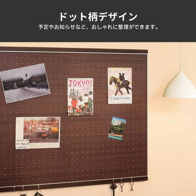 メーカー希望小売価格はメーカーカタログに基づいて掲載しています商品詳細 商品説明フックが使えるマグネット固定の掲示板です。写真やカードを飾るとお洒落なインテリアになります。さらにフックに小物が掛けられるので便利です。お知らせや予定をお洒落に整理できます。インテリアに合わせてナチュラルとセピアの2色から選べます。床や家具の色に合わせて選ぶと部屋全体が落ち着いた雰囲気でまとまるのでおすすめです。 商品名フック付マグネットボード 450×600mm 商品品番MR4051、MR4055 カラーナチュラル、セピア 商品サイズ約幅605×高さ506×奥行24mm 材質〈本体〉アルミ・スチール木目シート貼り・木質ボード、〈フック〉スチールメッキ 商品重量約2.1kg 耐荷重ピン5kg/ネジ5kg(フック1ヶあたり1kg) 付属品マグネット6ヶ、フック4ヶ、壁取付金具、石こうボード用ピン、木壁用ネジ その他生産国:日本、完成品 注意事項※[ネオジム磁石商品の取り扱いについて]ネオジム磁石は磁力が強力なため、下記に注意してください。ネオジム磁石を誤飲すると大変危険です。子供の手の届く場所に置かないでください。万が一誤飲した場合は、医師の診断を受け指示に従ってください。ペースメーカーなどの電子医療機器を装着した人、およびその他の電子医療機器へ磁石を近づけることは、機器の正常な動作を損なう可能性もあり、大変危険です。ご注意ください。携帯電話やスマートフォン・CD・パソコン・磁気カード・時計など、磁気の影響を受けやすいものを近づけないでください。画面上のカラーはブラウザや設定により、実物とは若干異なる場合がございます。あらかじめご了承の上ご注文ください。 同シリーズ商品一覧 450×600mm MR4051 MR4055 600×900mm MR4052 MR4056 900×1200mm MR4053 MR4057 ナチュラル(4520385807538) セピア(4520385807576) オリジン MR4051 – おしゃれで便利なフック付きマグネットボード壁をおしゃれに演出しながら、実用的な収納スペースをプラス!オリジン MR4051は、マグネット&フック付きで、写真やメモ、鍵などをスッキリ整理できる多機能マグネットボードです。おすすめのシーン オフィスや書斎:重要なメモやスケジュール管理に キッチン:レシピや買い物リストを貼るのに便利 子ども部屋:お絵かきや学校のプリントの掲示に こんな方におすすめ 省スペースで収納を増やしたい方 インテリアに馴染むシンプルなデザインを探している方 日本製のしっかりした品質のボードを求める方 商品ポイント マグネット6個&フック4個付きで多用途に使える ドット柄デザインがインテリアのアクセントに 壁掛けOK!省スペースで使える 幅45×高さ60cmの程よいサイズ感 安心の日本製 関連ワードマグネットボード、メモボード、ウォール収納、オフィス用品、子ども部屋収納、キッチン整理、インテリア、壁掛けボード、書類管理、日本製、整理整頓
