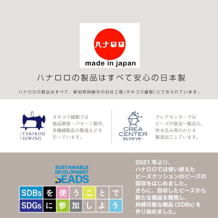 ※ビーズの量を調節してちょうどいい高さに変えられる、わたし膝下まくら。少し膝を上げることでゆったりとリラックスできます。 しっかりと体を休めるためにも、ベッドの上など、平らなところで仰向けになり、膝をゆったりやさしくもち上げてくれるクッションを使ってのリラックスがオススメです。 ビーズの足まくらなら、やさしく包み込むような感触なのに、しっかりと持ち上げてくれます。 おやすみ前に15分程度、膝を持ち上げてあげることで仰向け姿勢の腰も楽になり、リラックスできます。 わたし膝下まくらはビーズの出し入れができるので、ご自分の好みの高さ、硬さに調節できてぴったりフィット。 しっかり足を持ち上げたい方はビーズを足して少し硬めのクッションに。 やさしく足を包み込むように上げたい方はビーズを減らしてやわらかめのクッションに。 仰向けの時に膝を曲げて15cmほどの高さにしてあげることが大腰筋の緊張をほぐし、腰がぴったりとベッドについた状態になりリラックスできます。 ビーズの膝下クッションだから、ご自分の体格に合わせてビーズの量を調整することで15cmの高さに合わせられます。 とってもなめらかで、しかも補充しやすいハナロロオリジナルのクレアビーズ(直径クレアビーズ)。流動性に優れているので、足を乗せるだけでやさしくぴったりフィットします。また、とっても軽いので持ち運びも楽チン。 こちらの商品は、お客さまのお好みのビーズ量を調整して頂くためにカバーを被せないで配送させて頂いています。補充用ビーズ(別売)もございますので、ボリュームが足らないなぁと思われたら補充してご使用してください。 カバーに使われているパイル生地は、ポリエステルニットが25%含まれることで、ビーズの動きにぴったりと沿う、伸縮性をもたせてあります。綿が75%なのでさらりとした肌触り。汗もしっかり吸い取ってくれます。お洗濯もできるので、いつも清潔に使用できます。 製品スペック ■サイズ W65×D28×H15?28cm(高さはビーズの量によって変わります) ■重量 約1kg ■材 質 カバー:パイル地/綿75%、ポリエステル25% 中袋:ポリエステル100% 中材:発泡ポリスチレン(クレアビーズ) ※ラッピング可 ※熨斗不可■日本製 お手入れ方法 ■本体はお洗濯不可。表面が汚れて乾いた布を使って拭き取ってもとれない場合は、中性洗剤等をうすめた液をつけた布で軽く拭いてください。その後、ぬれた布で2度拭きしてください。 ■カバーはお洗濯可能です。お洗濯ネットに入れて弱水流で洗い、形を整えて風通しの良い日陰で干してください。 ■ビーズの臭いをとるために、一週間経ってから製品化しておりますが、気になる方は風通しの良い場所で陰干ししてご使用ください。 ■クッションが硬く感じる時は、中のビーズを少し抜いてご使用ください。ビーズの補充も可能です。 ※使用感には個人差があります。 ギフトラッピング(500円)はこちら