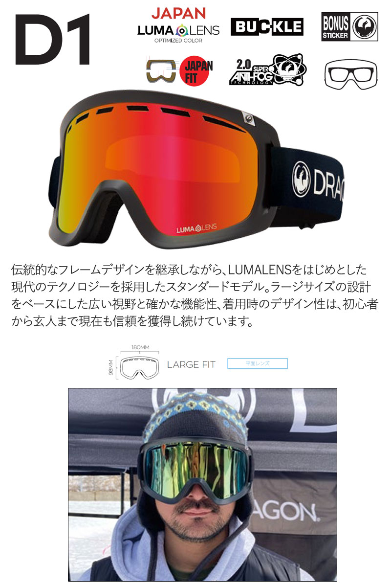 25-26 DRAGON/ドラゴン D1 JP-LumaLens メンズ レディース ゴーグル ジャパンフィット バックルベルト 日本人向け スノーボード スキー メガネ対応 2026 予約商品
