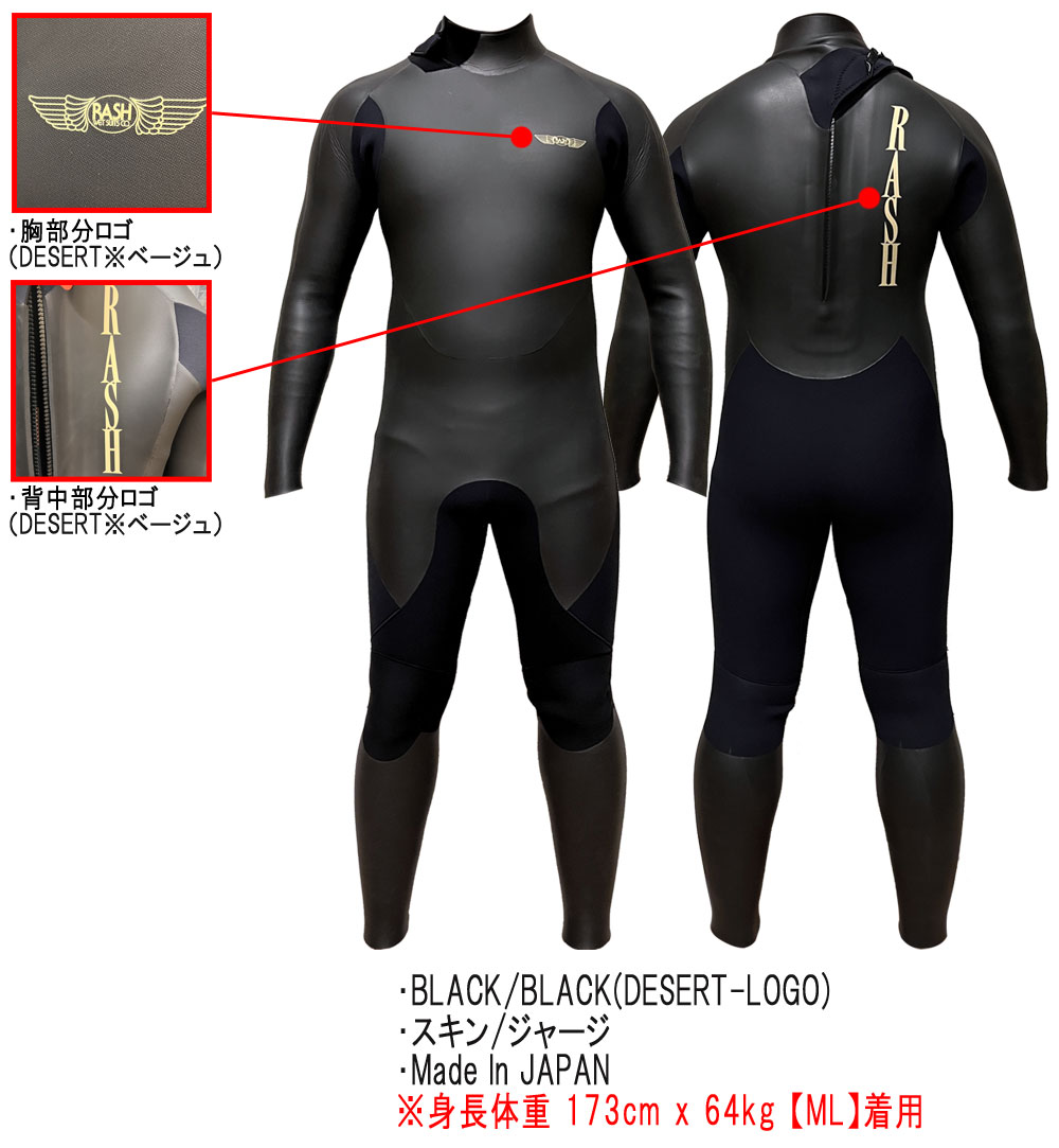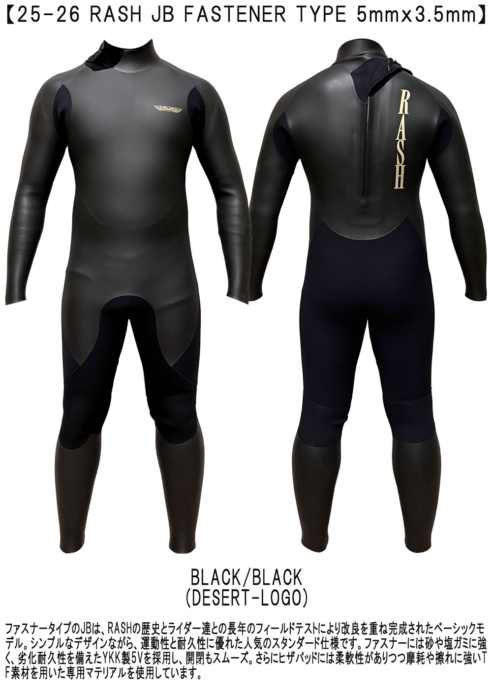 25-26 RASH JB FASTENER TYPE BON / ラッシュ バックジップ 5mmx3.5mm ウェットスーツ サーフィン セミドライ BON裏起毛 フルスーツ 冬用