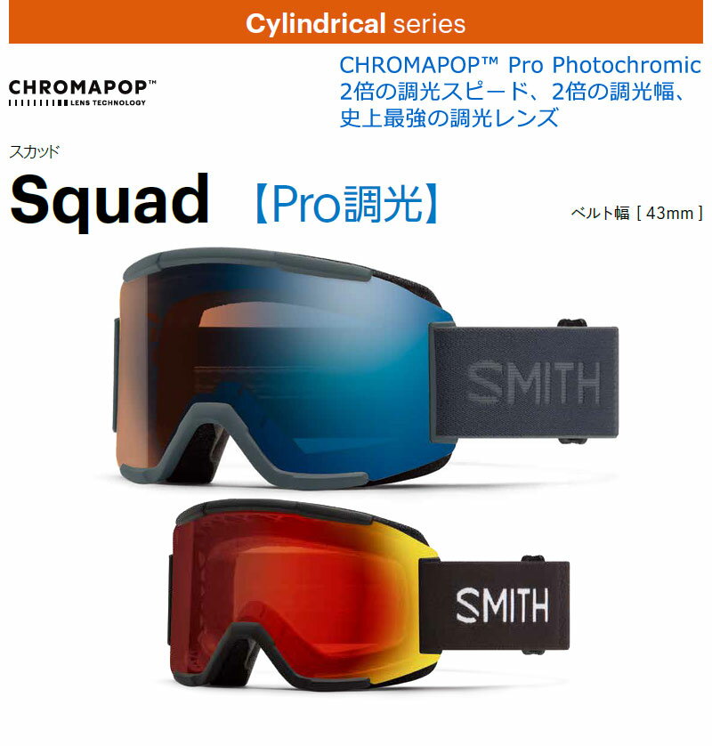 25-26 SMITH/スミス SQUAD プロ調光 スカッド ゴーグル 調光レンズ アジアンフィット メンズ レディース スノーボード スキー 2026 予約商品