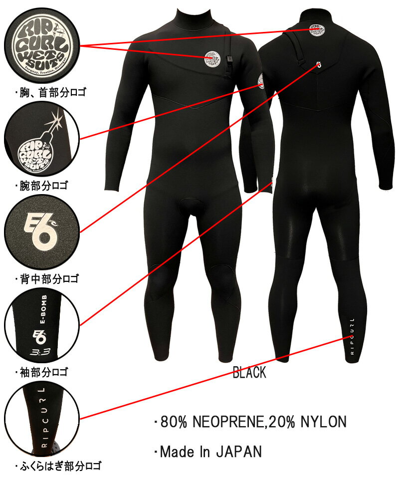 2022 RIPCURL E6 E BOMB W2SE6ZFU / リップカール イーボム ジップフリー 3x3 ウェットスーツ サーフィン フルスーツ 春秋用 海外モデル