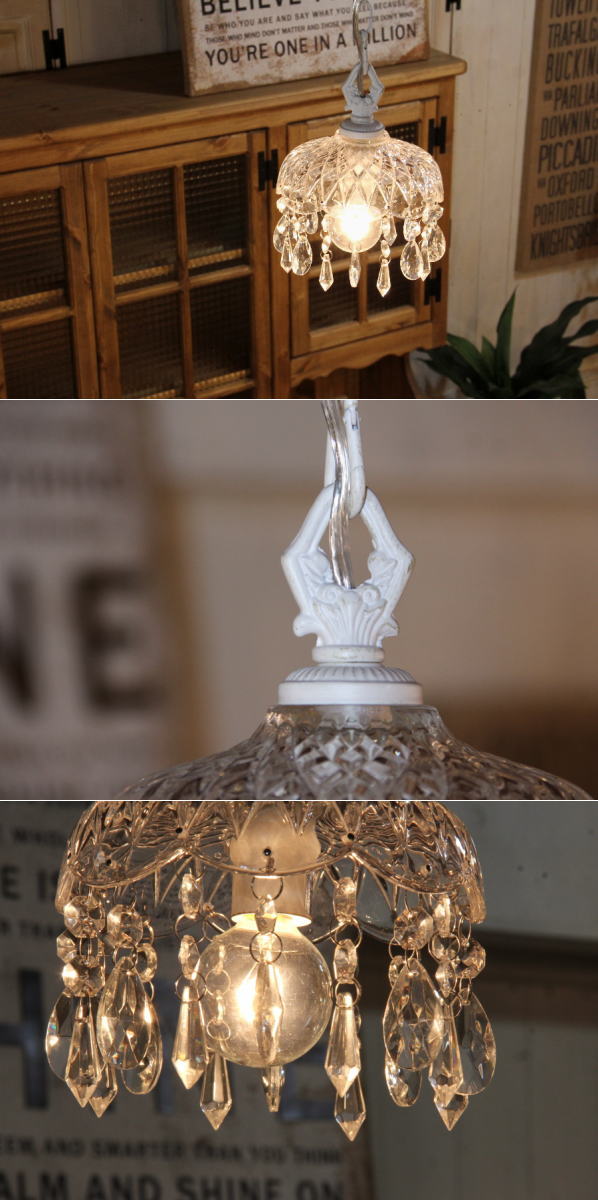 ■商品名 Esprit・1灯シャンデリア (エスプリ・1灯シャンデリア) ■送料 送料サービス (沖縄、一部離島はお見積もり) ■サイズ 本体:H220×160mm シーリングカップ:直径140×H210mm 電球:E-17 40w(1灯) プラグ:引っ掛けシーリング チェーン:約300mm(短縮調整可能) 重量:1.0kg チェーンサイズの延長も可能です。 ご希望の際はお問い合わせくださいませ 。 ※ご確認くださいませ。「ソケット部分などに若干の傾き」、 「ガラス部分に欠け」などがある場合がございますが、弊社基準に沿って良品の判断をしております。何卒、ご了承下さいませ。 ■材質 本体:ガラス&スチール ■カラー シェード:クリア チェーン:ホワイトアンティーク色 ■商品説明 きらきら輝くガラスシェードにクリスタルガラスを飾って。お部屋をプチゴージャスに演出します。トイレや階段、カウンターの上に並べて飾っても◎。Esprit・1灯シャンデリア(エスプリ・1灯シャンデリア) / Chandelier 切り込みのはいったガラスシェードがきらきらと輝く1灯シャンデリア。 トイレや洗面所などの小さなお部屋にぴったりな小さめサイズ。 お部屋をプチゴージャスに演出します。 チェーンはホワイトアンティーク色。 エレガンスで、品のあるデザイン。 ガラスパーツを増やしたり、スワロフスキーへ変更も承ります。お気軽にご相談ください。 チェーンサイズ調整可能。 お好みのチェーンサイズへ変更可能。 シーリングカップの中にコードを収納できるので お客様自身でも簡単に短縮が可能です。 お部屋に合わせて、お好みの長さをお申し付けください。 引っ掛けシーリングで取り付けも簡単です。 +zoom +zoom +zoom LED電球使用可能。 LED電球対応可能。 お洒落でエコな優れものです。 弊社でもLED電球を取り扱っております。 セットでご購入をご希望の場合は、 項目選択よりお選びくださいませ。 +zoom +zoom +zoom +zoom