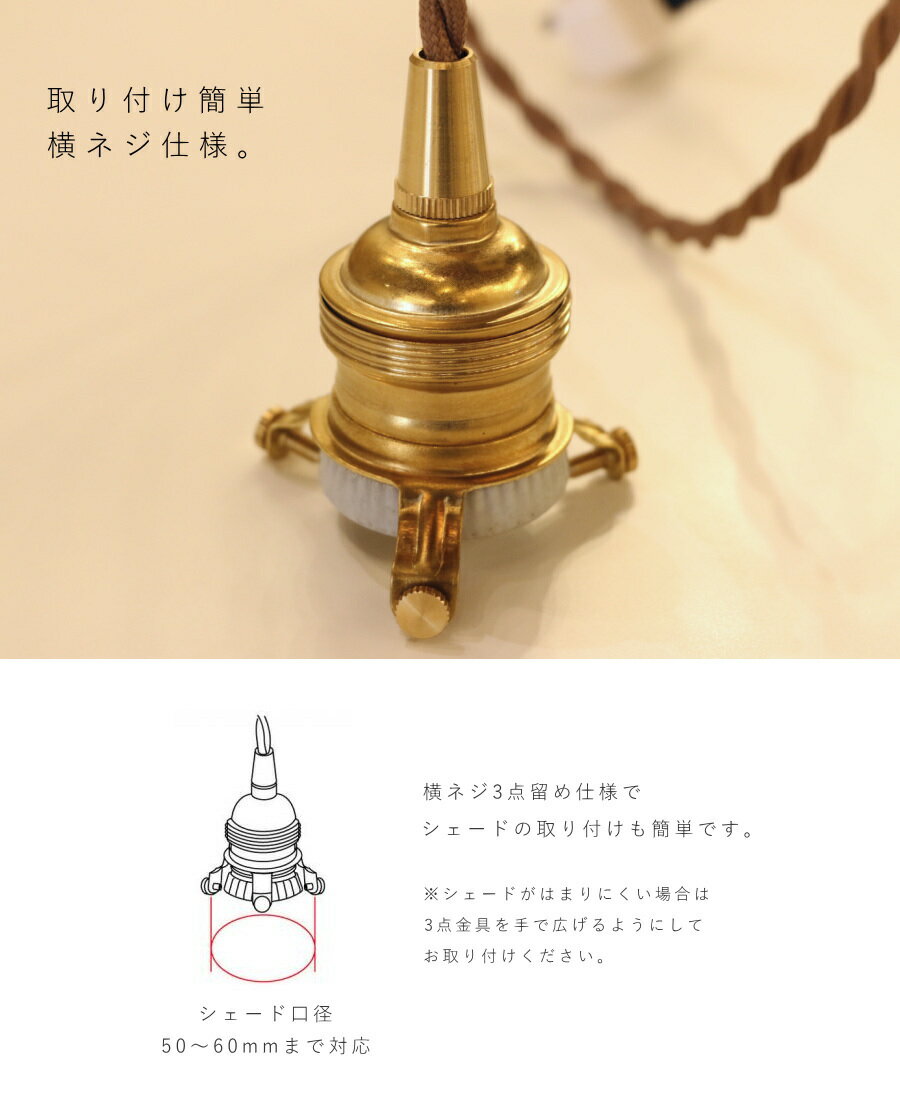 【 引掛シーリング 灯具 E26用 シーリングカップ付き 】 ツイストコード 横ネジ カントリー フレンチ 北欧 ペンダントライト ペンダントランプ アンティーク 天井照明 コード LED対応 簡単取り付け 真鍮 ソケット ゴールド