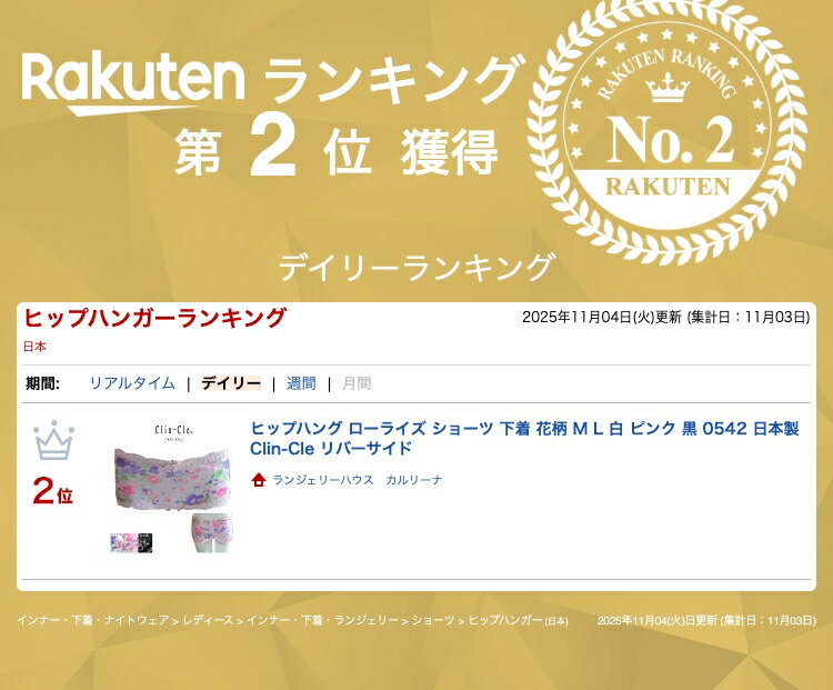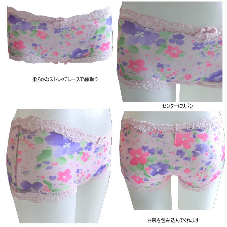 ヒップハング ローライズ ショーツ 下着 花柄 M L 白 ピンク 黒 0542 日本製 Clin-Cle リバーサイド