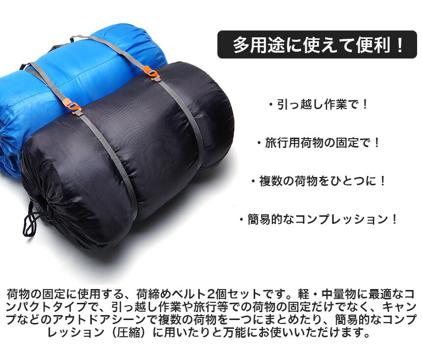 荷物 固定 ベルト 2個セット 荷締め クイック ベルト バンド コンパクト 軽量 圧縮 コンプレッション
