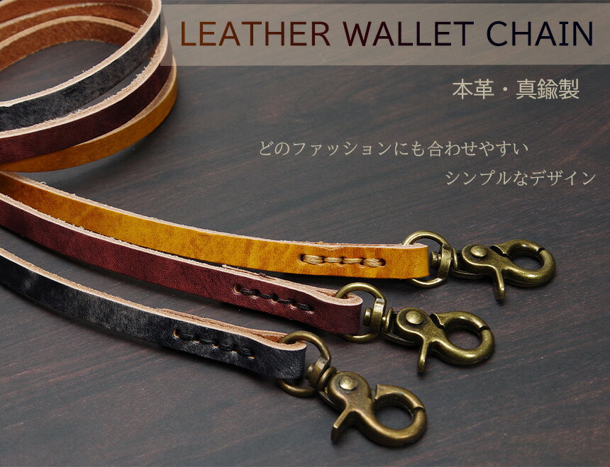 ウォレットチェーン レザー 本革 シンプル ベルト 真鍮 おしゃれ 財布 ナスカン キーチェーン 鍵 キーホルダー ひも 紐 落下防止 ストラップ コード 長財布 60cm ファッション