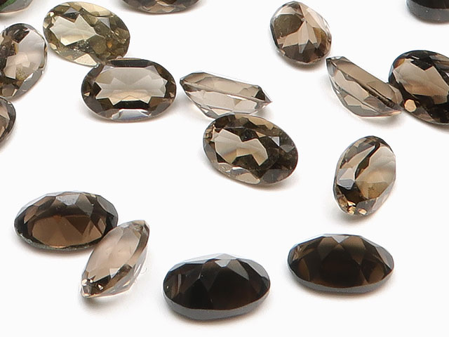 スモーキークォーツ オーバルファセットカット ルース 6×4mm【10コ販売】▽ 煙水晶 Smoky quartz 裸石 粒売り 天然石 ビーズ パワーストーン パーツ アクセサリー 素材 材料